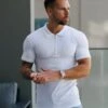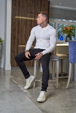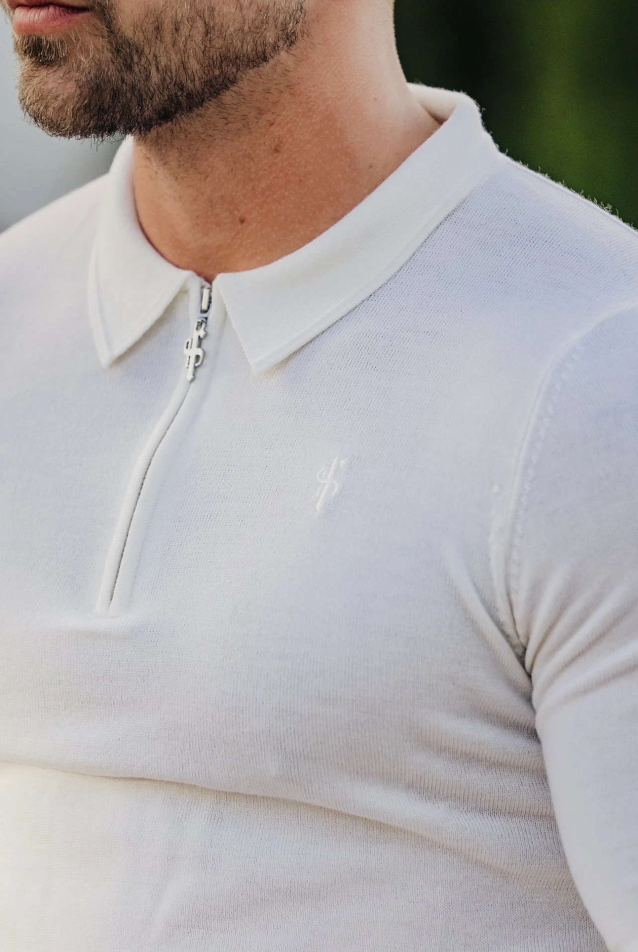 Father Sons Classic White Merino Wool Knitted Zip Polo Jumper With FS Embroidery – FSN019