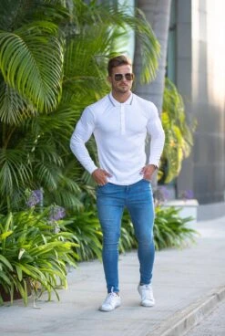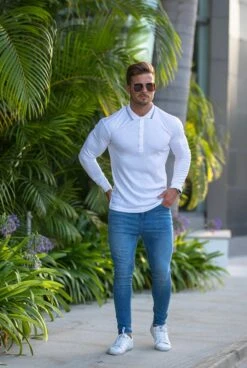 Father Sons Classic White Pima Polo Shirt With Contrast Long Sleeve – FSH429