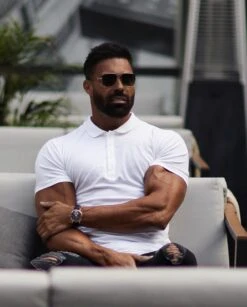 Father Sons Classic White Polo Shirt with Tonal Buttons and Embroidery – FSH874
