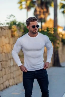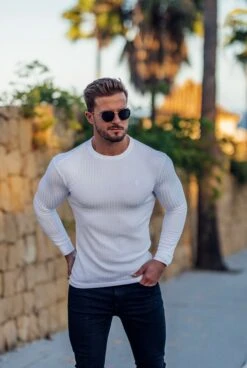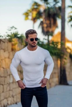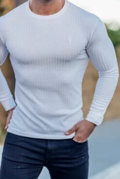 Father Sons Classic White Ribbed Knit Jumper – FSH534
