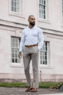Father Sons Classic White Ribbed Polo Shirt Long Sleeve With Gold Decal – FSH975