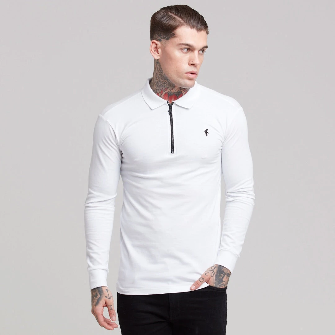 Father Sons Classic White Zipped Long Sleeve Polo Shirt – FSH300