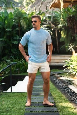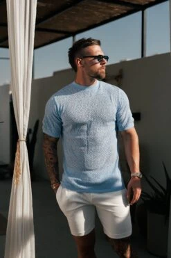 Father Sons Crochet Crew T-Shirt Blue Short Sleeve – FSJ088