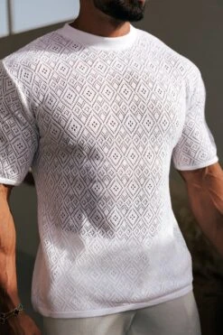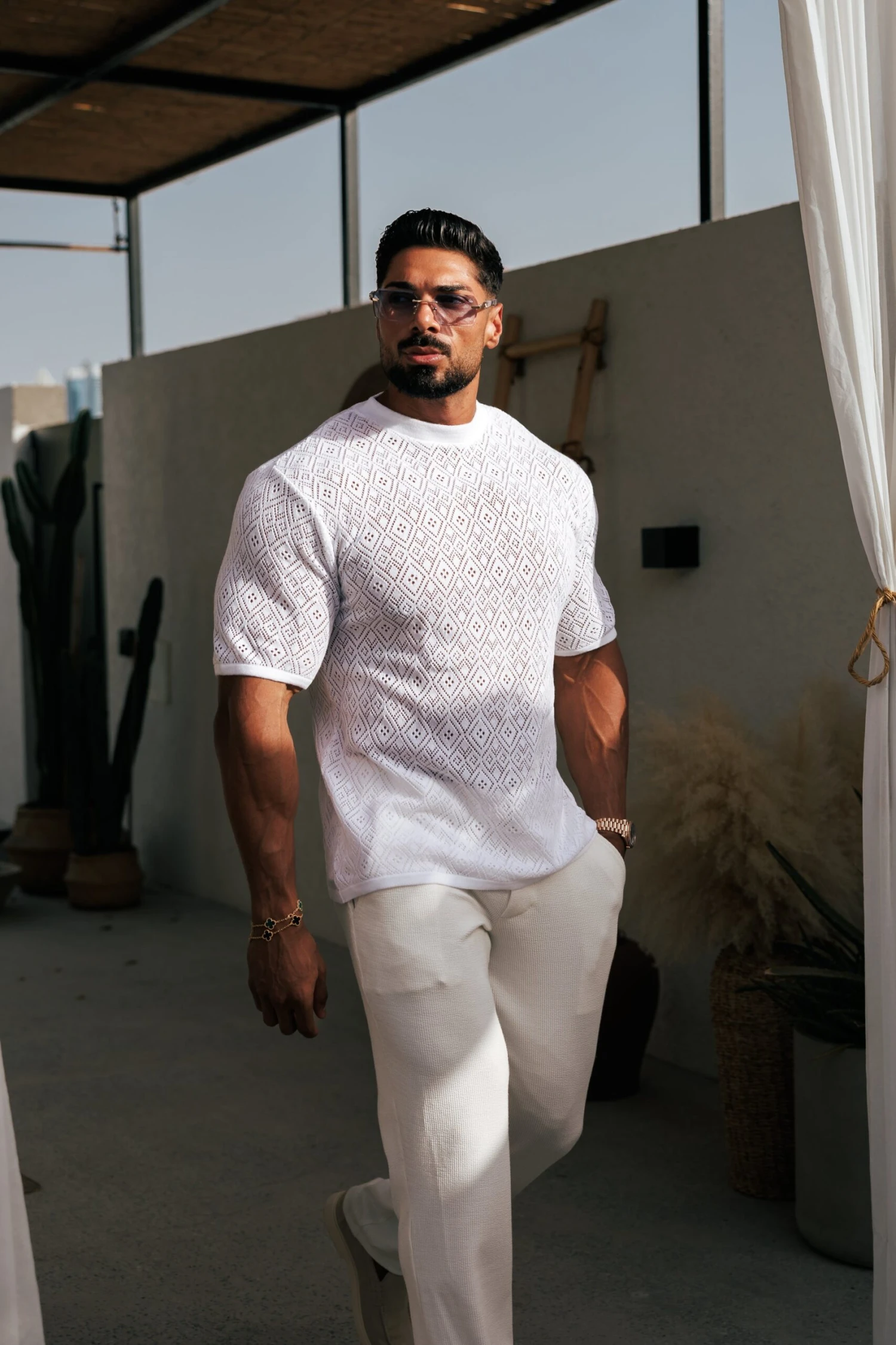 Father Sons Crochet Crew T-Shirt White Short Sleeve – FSJ086