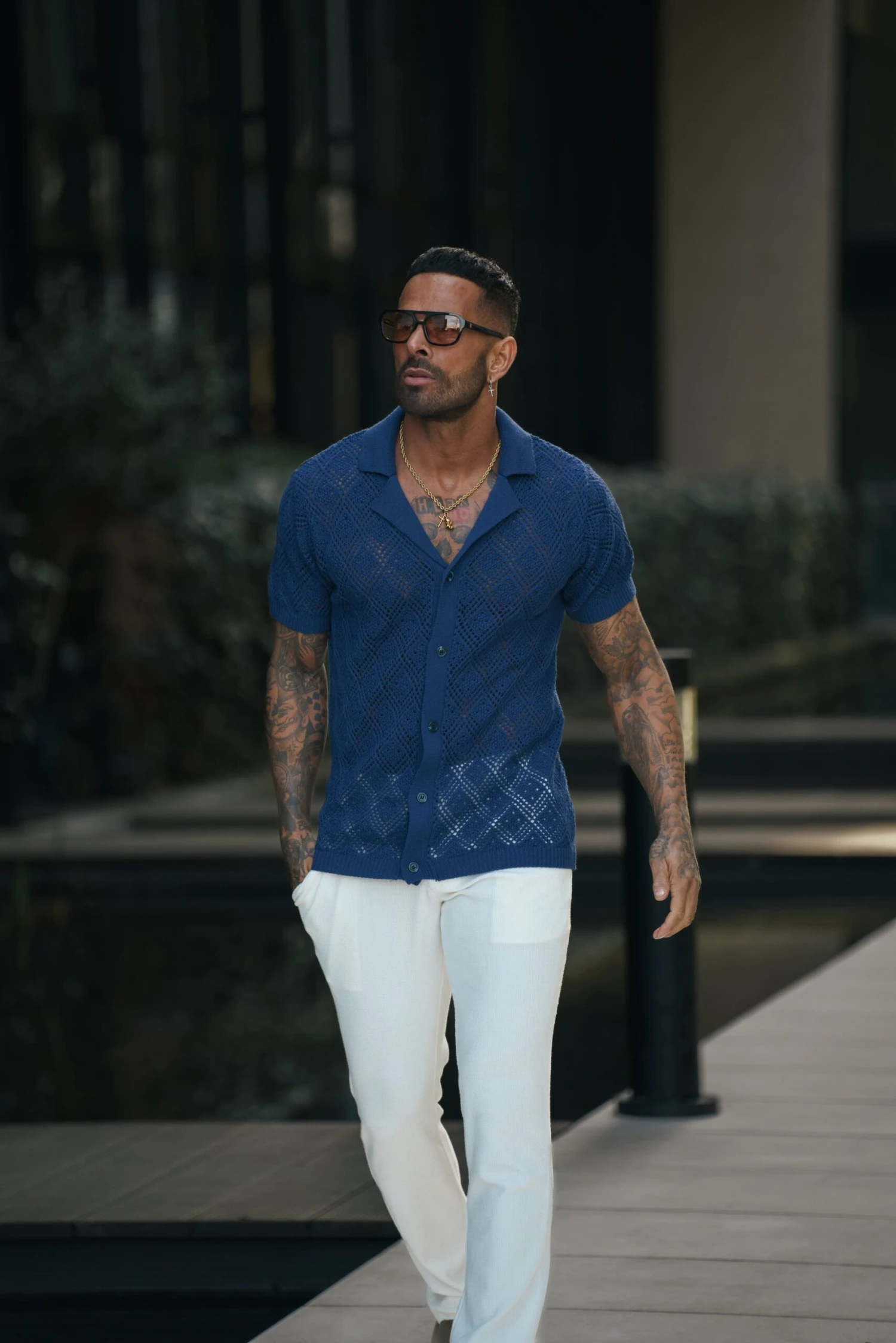 Father Sons Crochet Shirt Caribbean Blue Short Sleeve – FSJ079