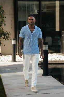 Father Sons Crochet Shirt Caribbean Blue Short Sleeve – FSJ080