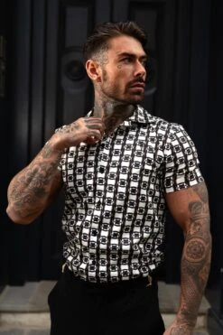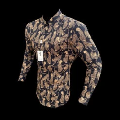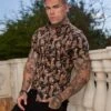 Father Sons Hawaiian Boxy Black / Cream /Taupe Print with Revere Collar Short Sleeve – FS996