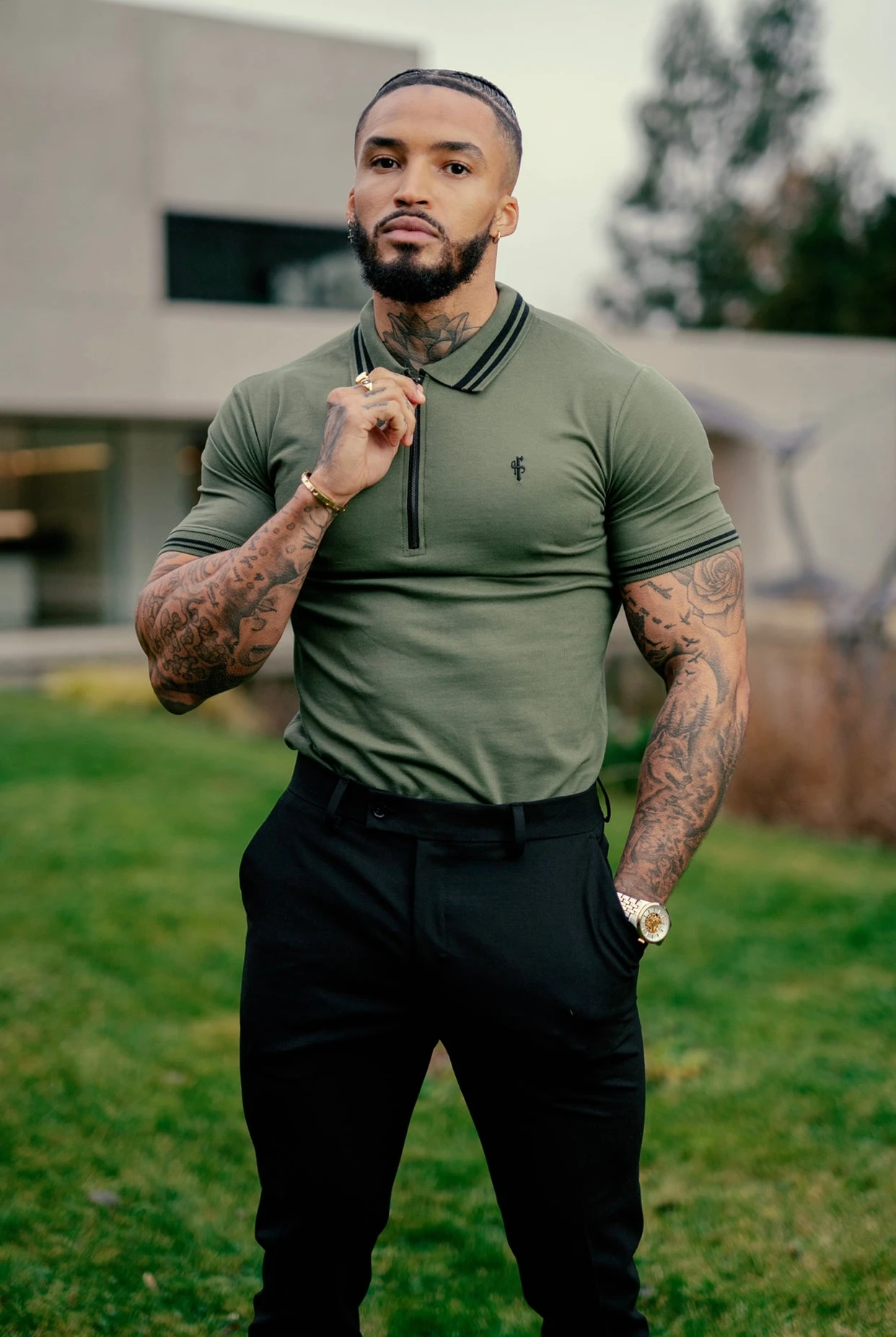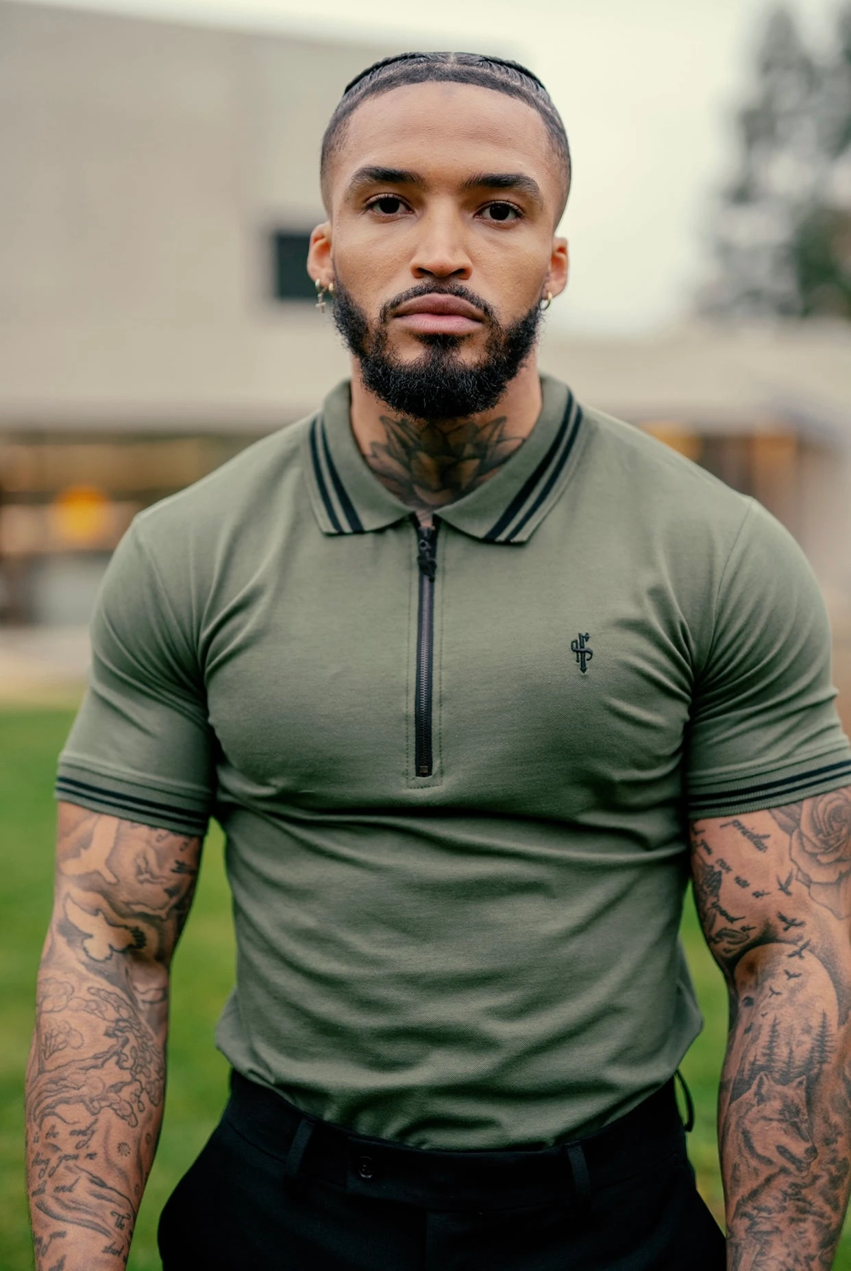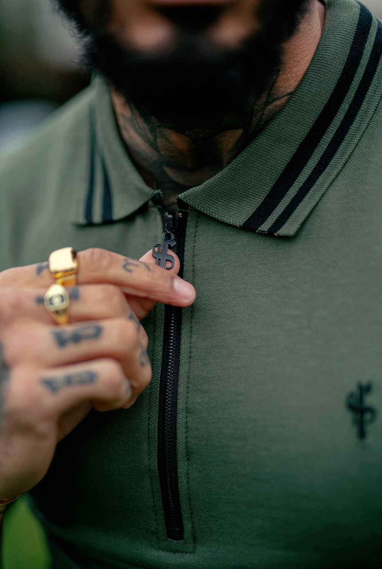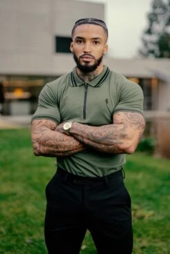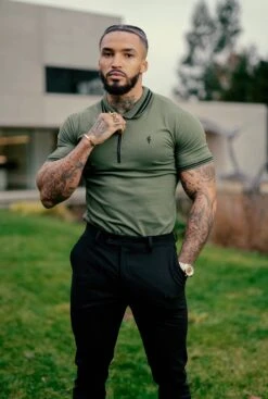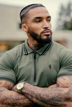 Father Sons Khaki and Black Collar Contrast Zip Polo – FSH337