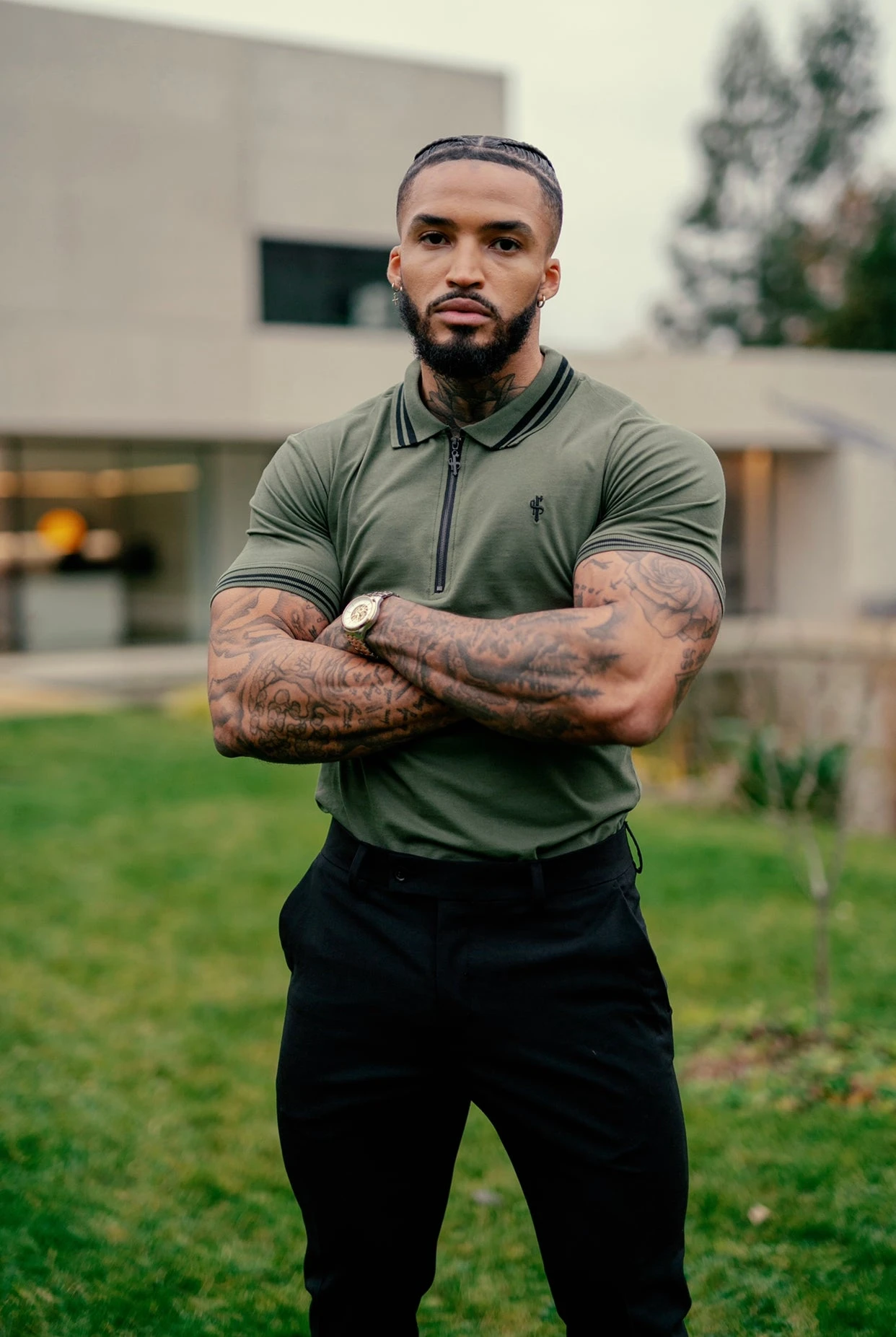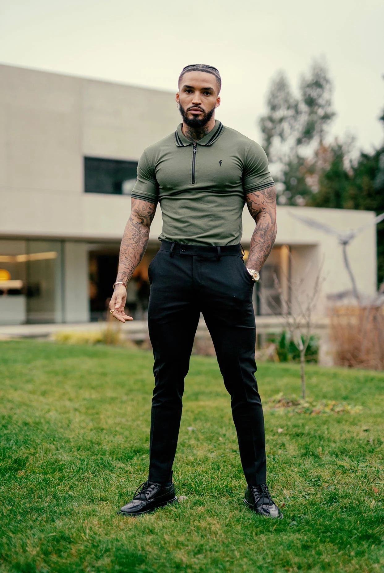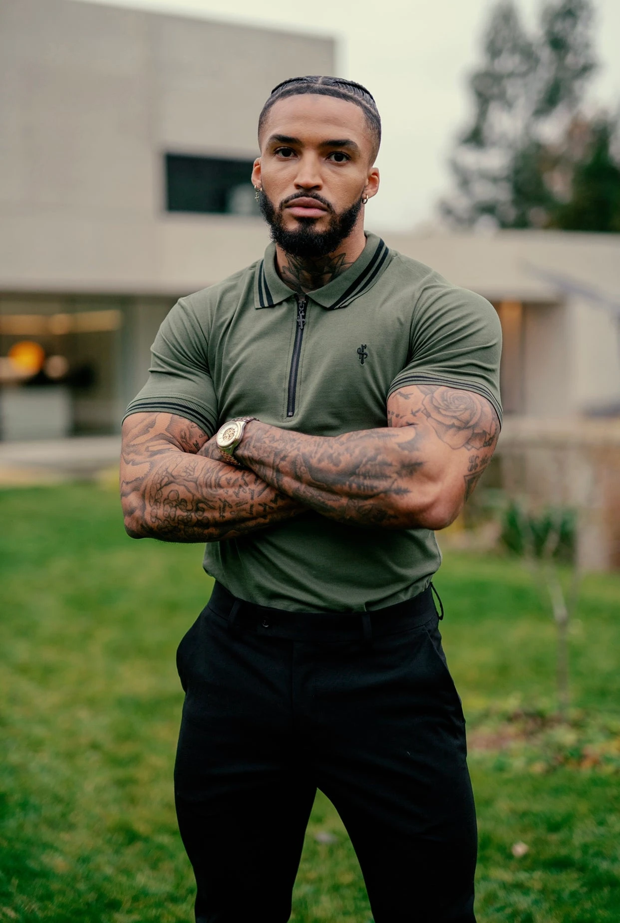 Father Sons Khaki and Black Collar Contrast Zip Polo – FSH337