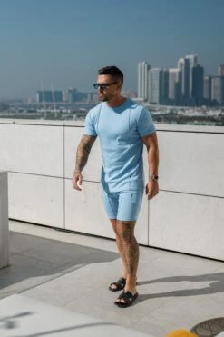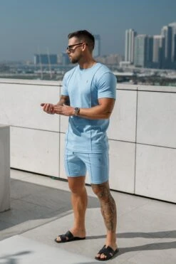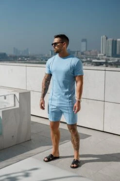 Father Sons Light Blue / Silver Crew T Shirt With Pintuck Detail – FSH1051