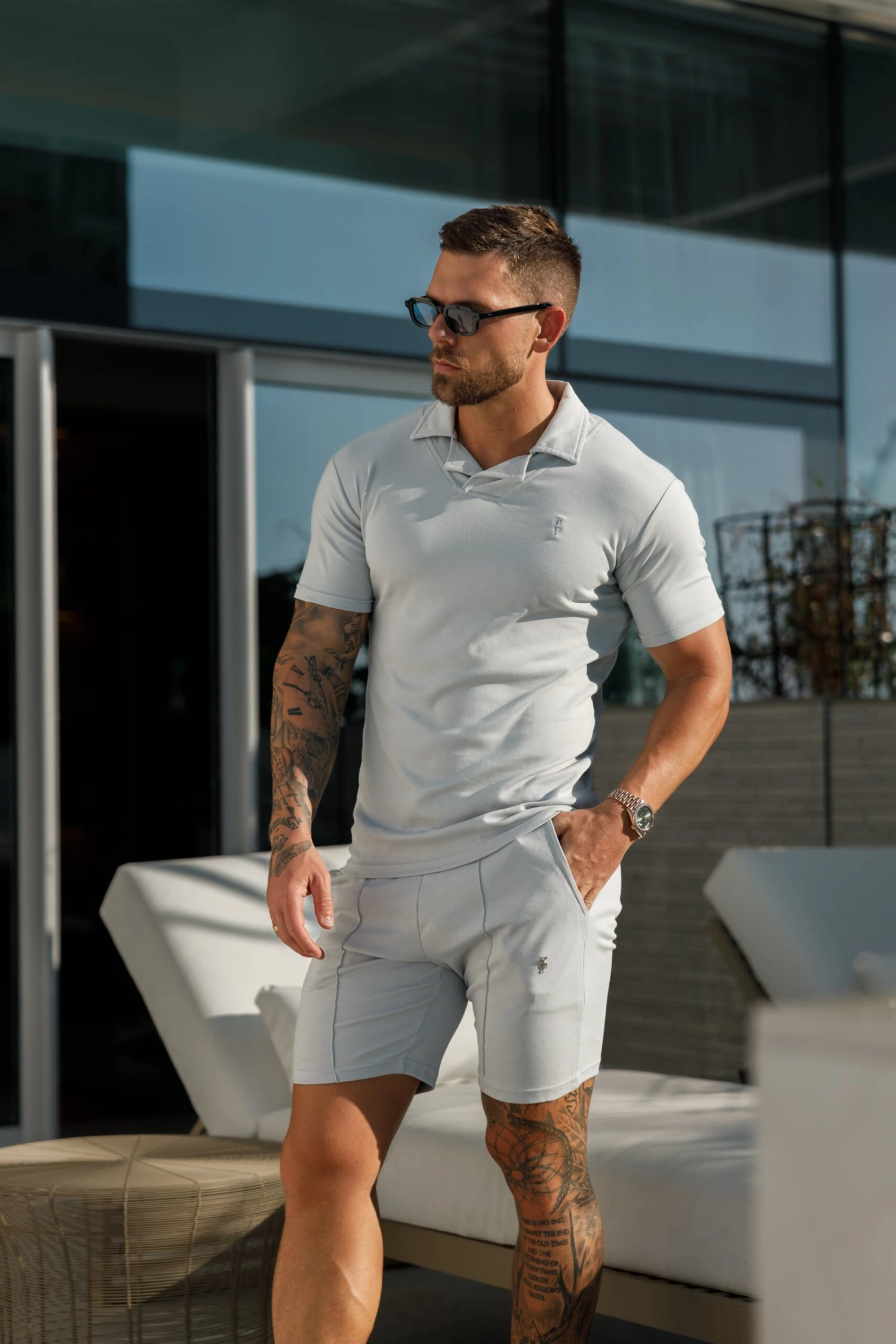 Father Sons Light Grey / Silver Elasticated Drawstring Pintuck Shorts – FSH1057