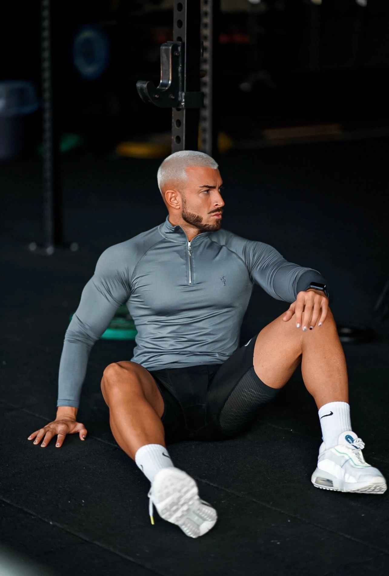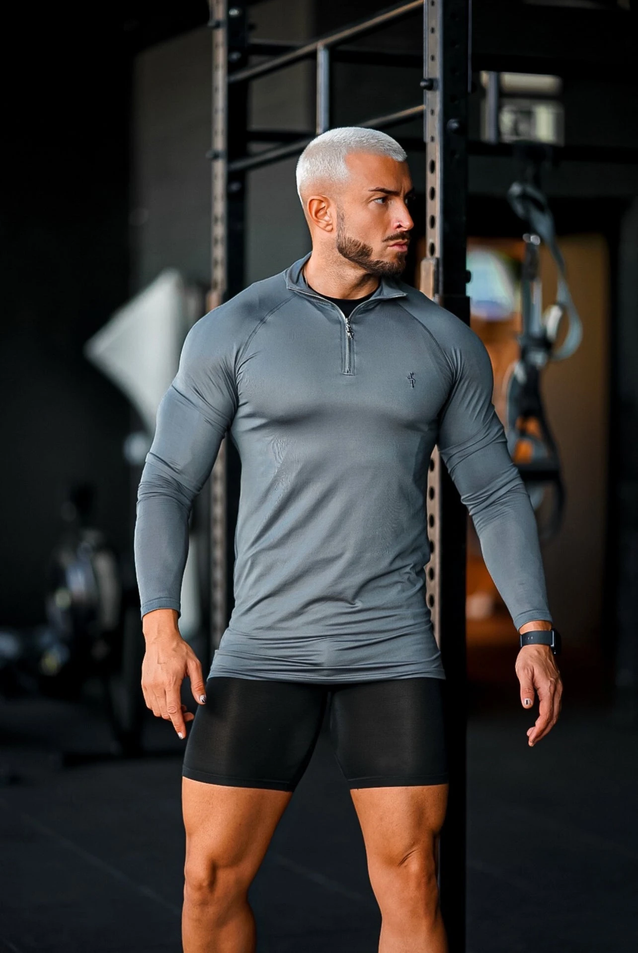Father Sons Long Sleeve Solid Dark Grey / Silver Half Zip Gym Top – FSH891
