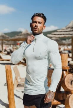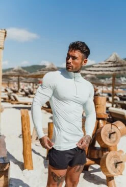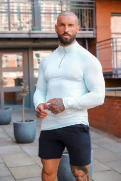 Father Sons Long Sleeve Solid Mint Half Zip Gym Top – FSH750