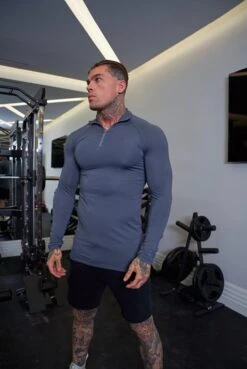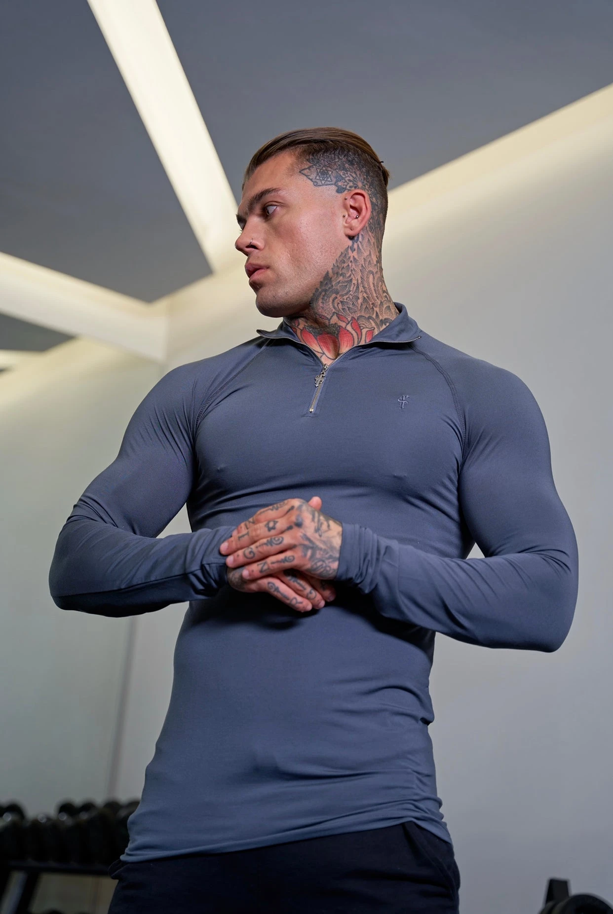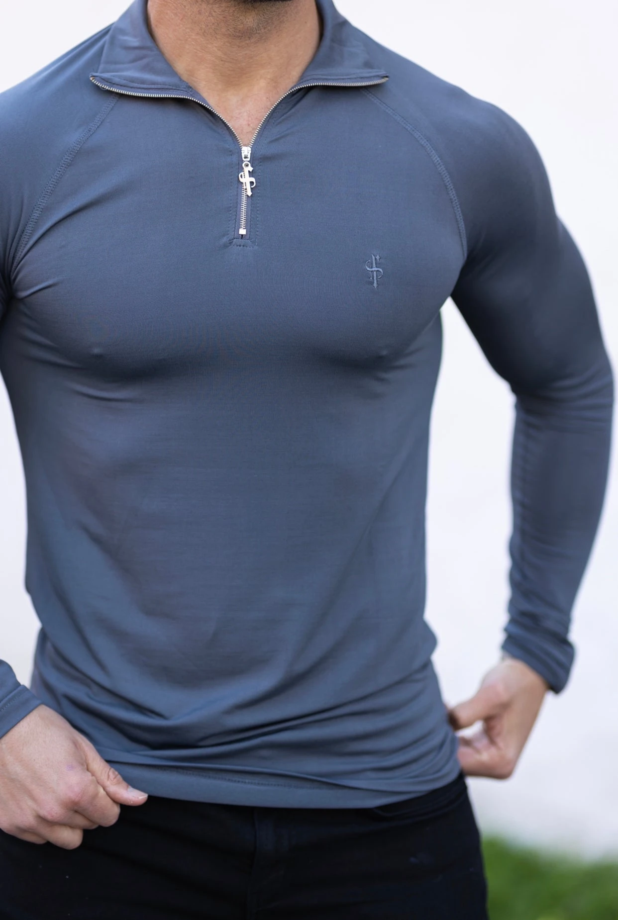 Father Sons Long Sleeve Solid Slate Grey Half Zip Gym Top – FSH693