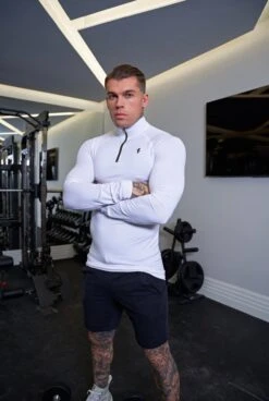 Father Sons Long Sleeve Solid White Half Zip Gym Top – FSH711