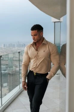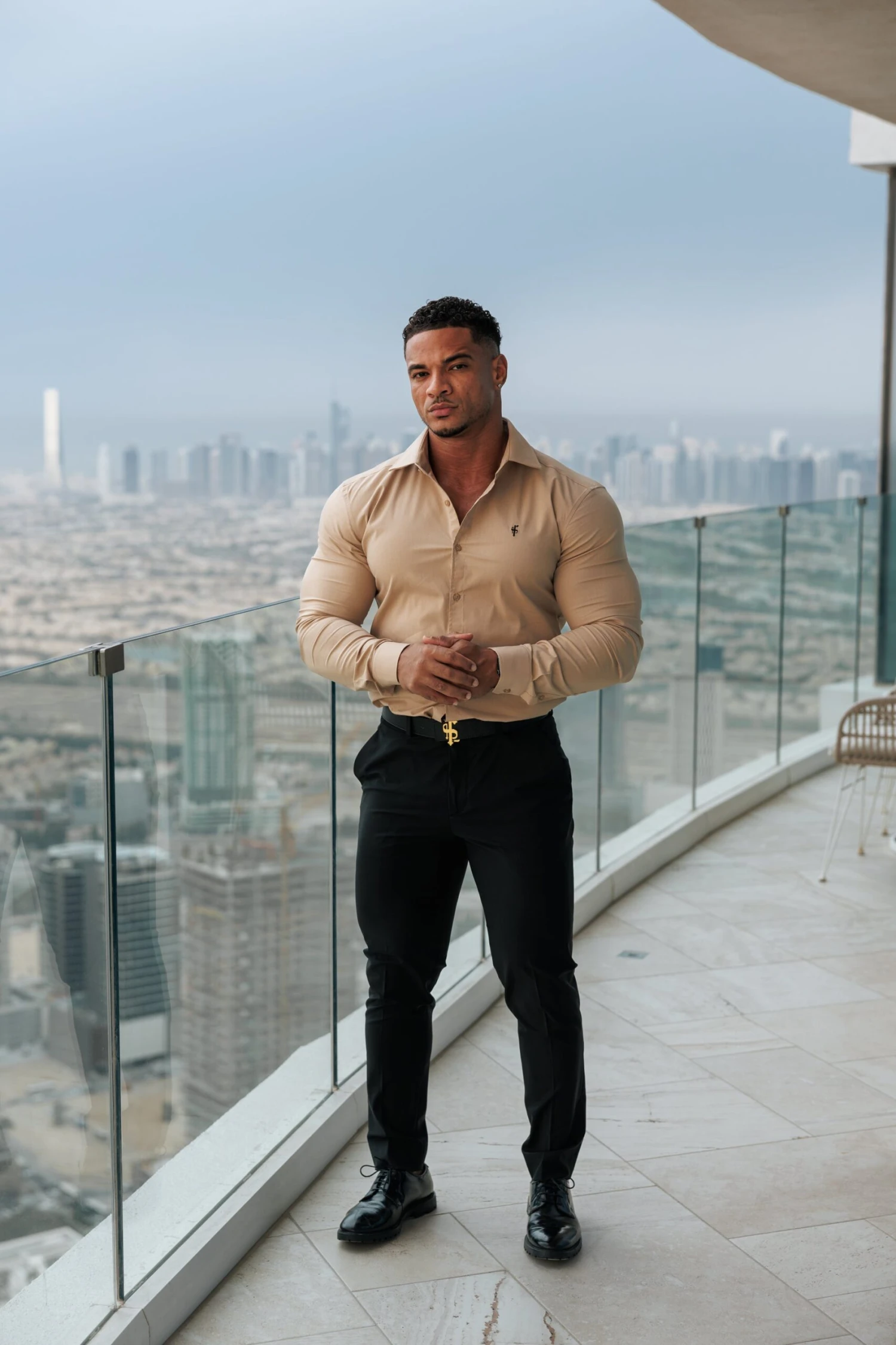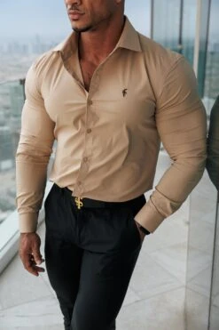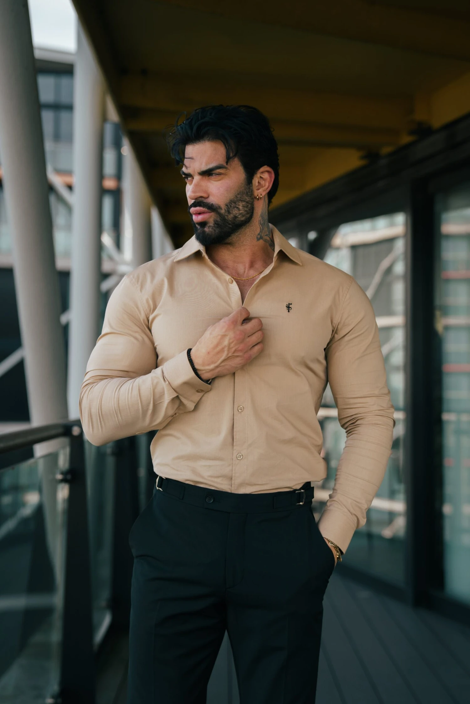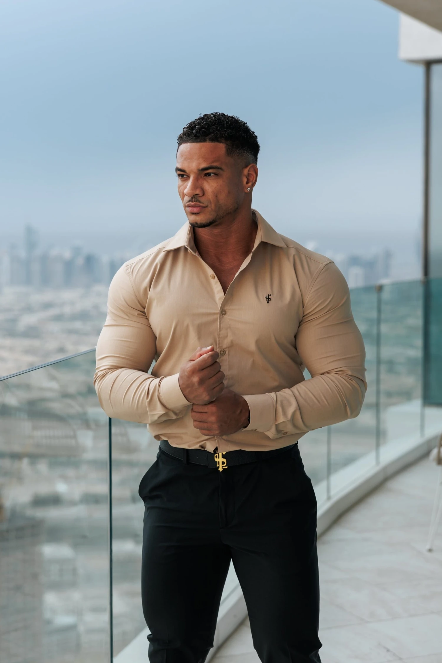 Father Sons Muscle Fit Advanced Stretch Beige with Cutaway Collar – FS1166