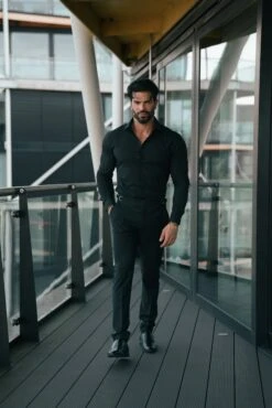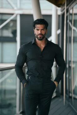 Father Sons Muscle Fit Advanced Stretch Black Cutaway Collar Shirt – FS1164