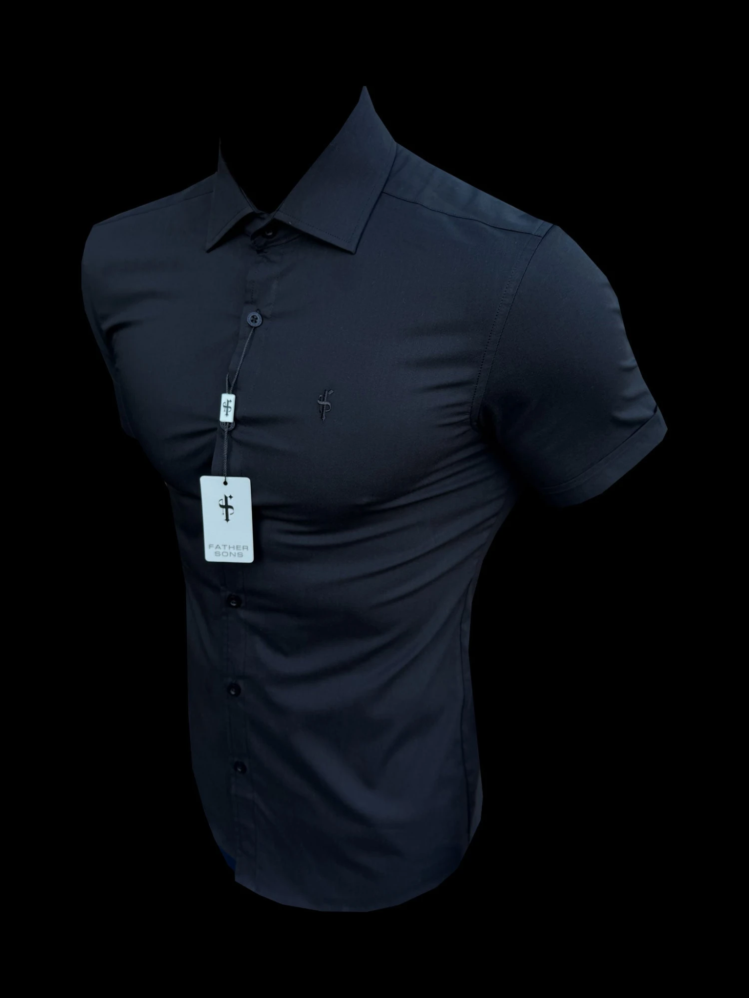 Father Sons Muscle Fit Advanced Stretch Black Short Sleeve with Cutaway Collar – FS1159