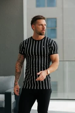 Father Sons Printed Black / White Stripe Fitted T Shirt – FSH1167