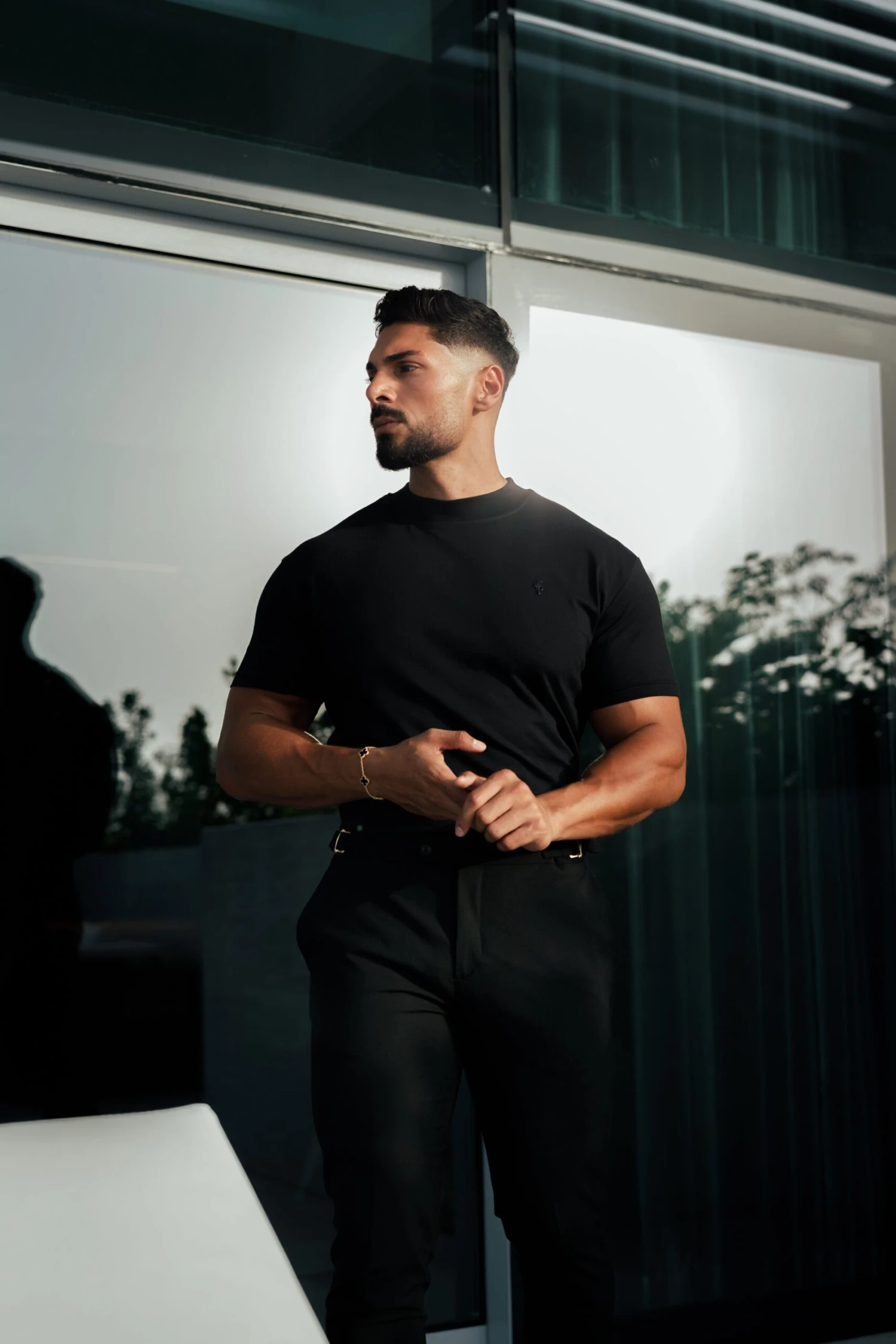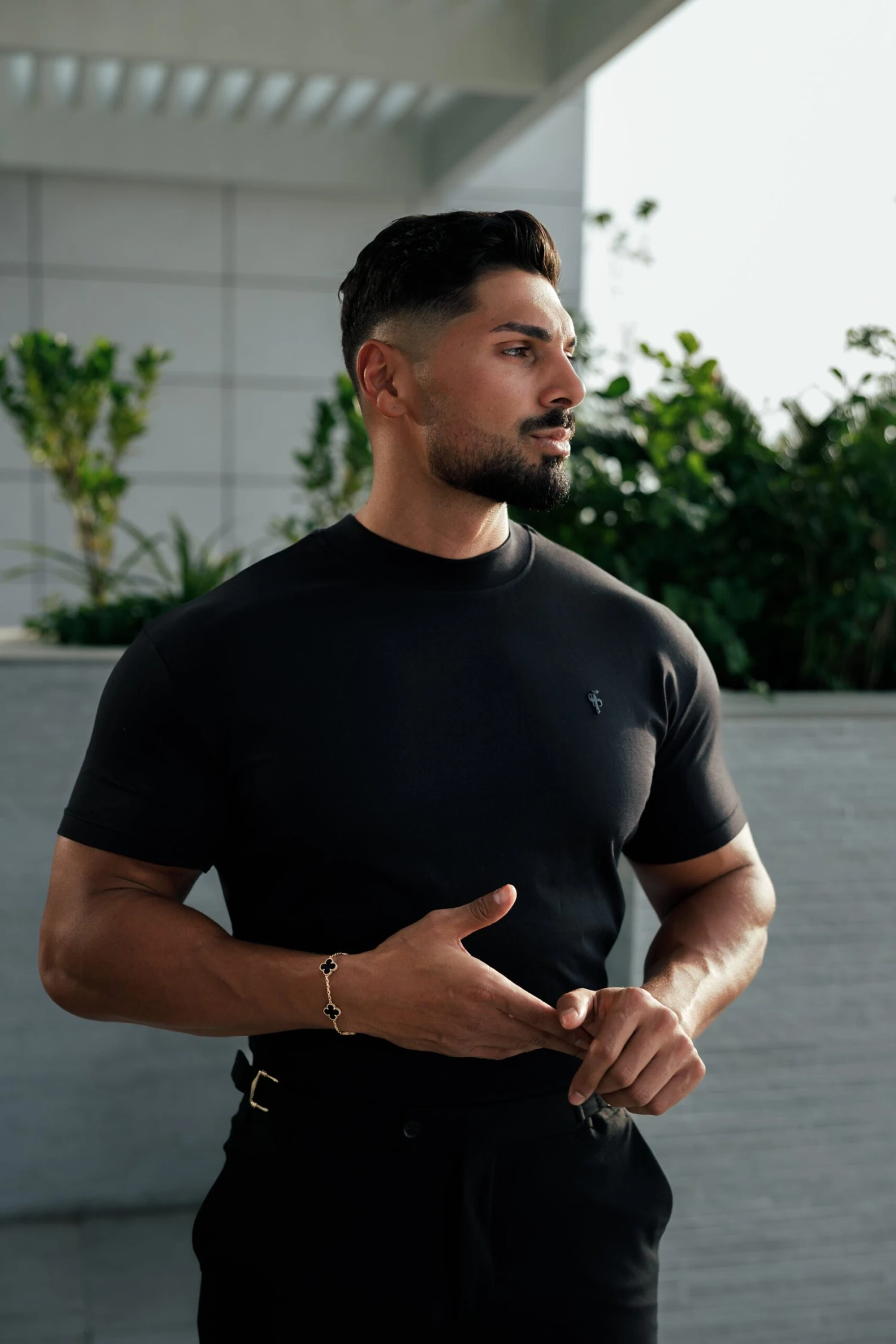 Father Sons Ribbed High Neck Crew Short Sleeve Black / Black – FSH1004
