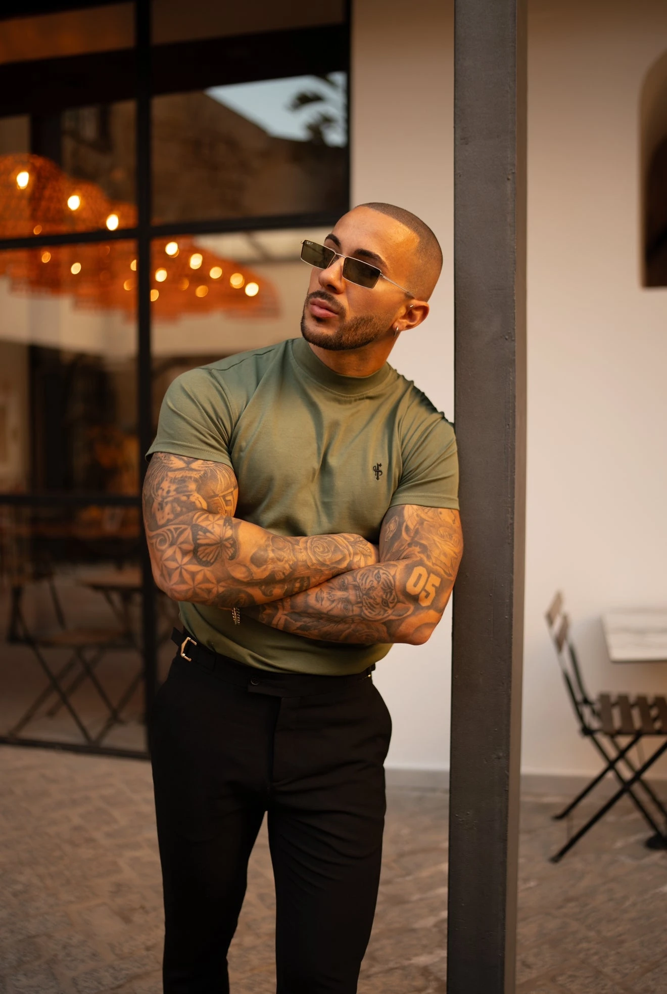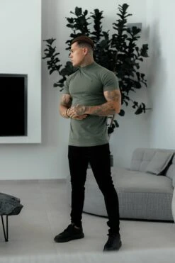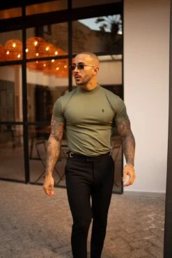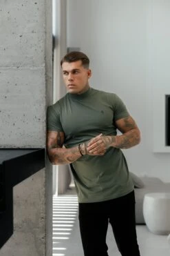 Father Sons Ribbed High Neck Crew T-Shirt Short Sleeve Khaki / Black – FSH1116