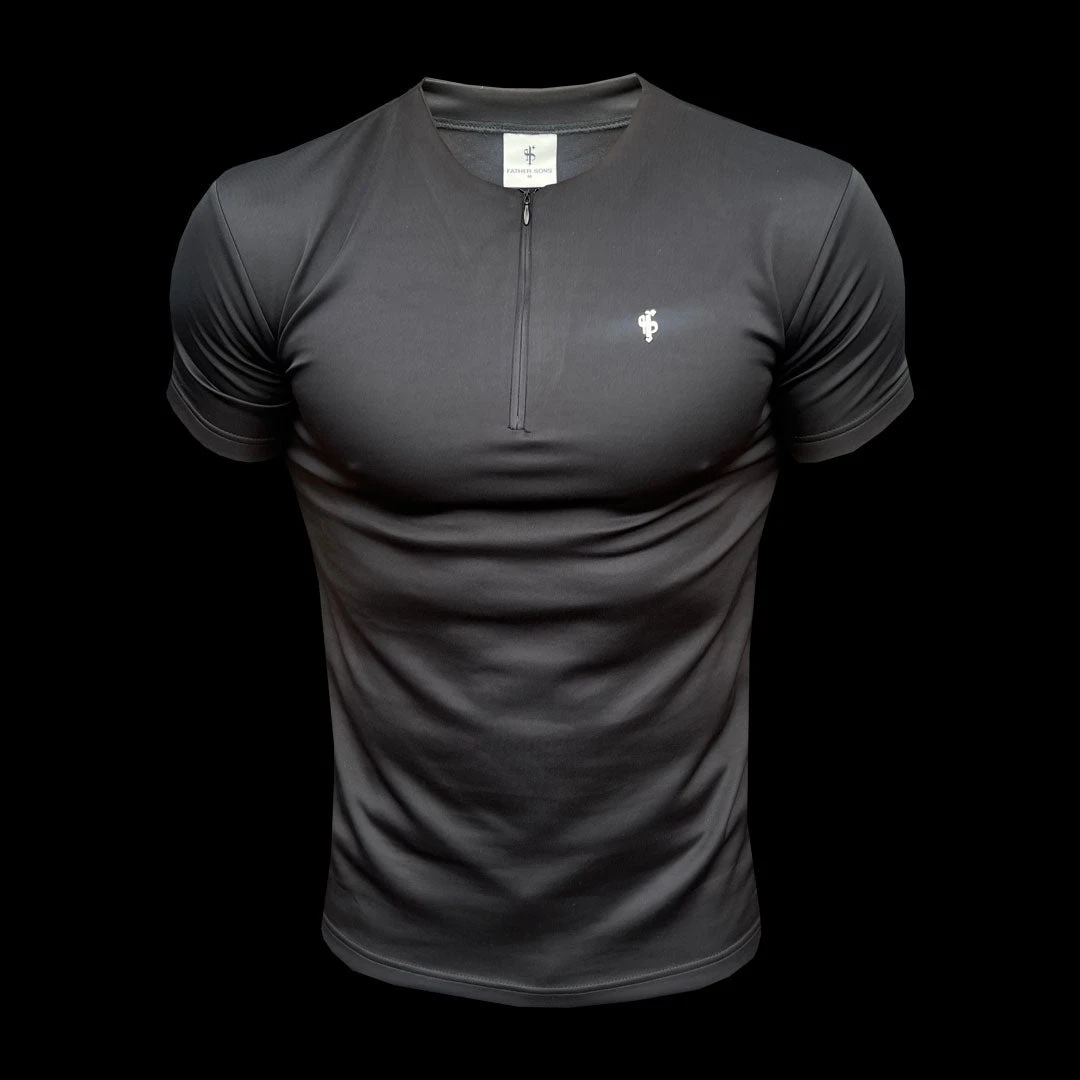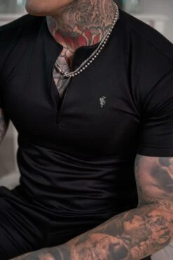 Father Sons Black / Silver Crew T Shirt With Zip Detail Short Sleeve – FSH1032