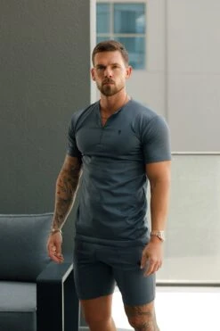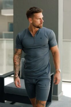 Father Sons Charcoal / Black Crew T Shirt With Zip Detail Short Sleeve – FSH1109
