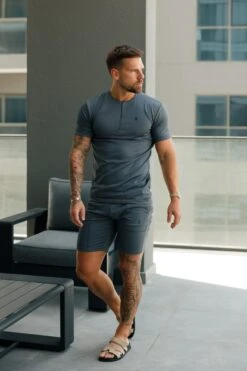 Father Sons Scuba Charcoal / Black Elasticated Drawstring Pintuck Shorts – FSH1112
