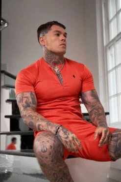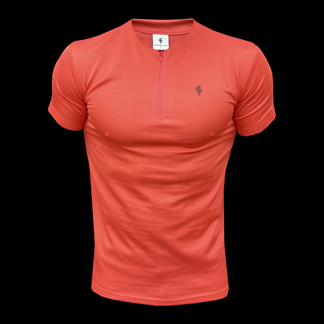 Father Sons Coral / Black Crew T Shirt With Zip Detail Short Sleeve – FSH1036