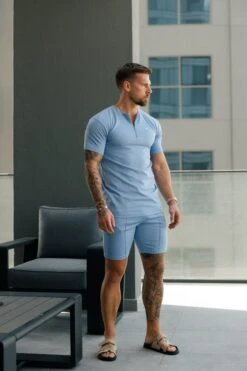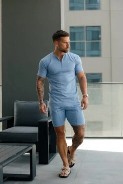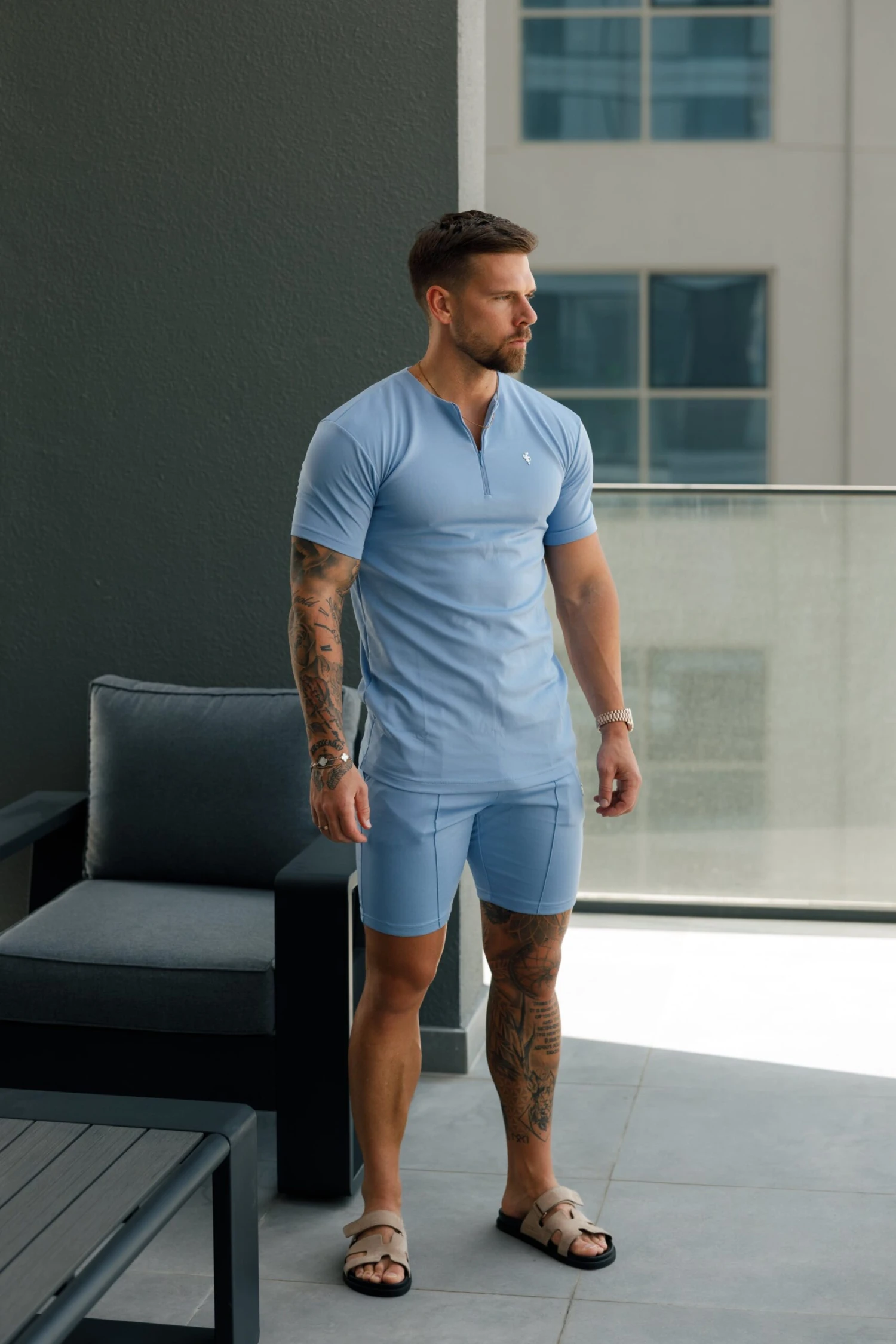 Father Sons Light Blue / Silver Crew T Shirt With Zip Detail Short Sleeve – FSH1117