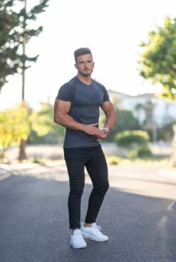 Father Sons Short sleeve Charcoal crew gym top with Raglan sleeve detail – FSM026