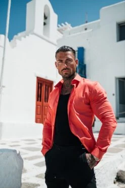 Father Sons Slim Sateen Classic Coral Long Sleeve – FS969