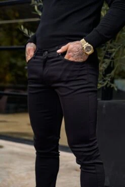 Father Sons Slim Stretch Black Relaxed Sateen Trousers – FSH1302