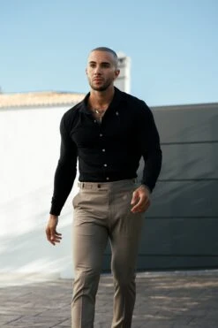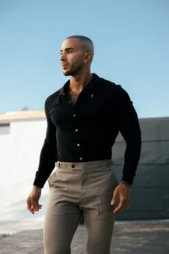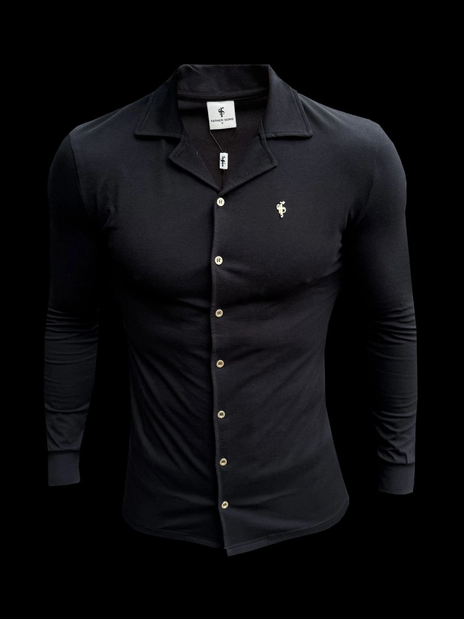 Father Sons Stretch Black Pique Revere Shirt Long Sleeve – FSH1207