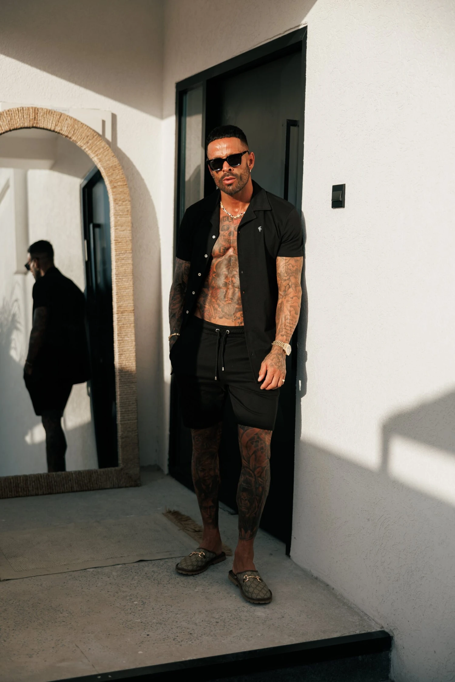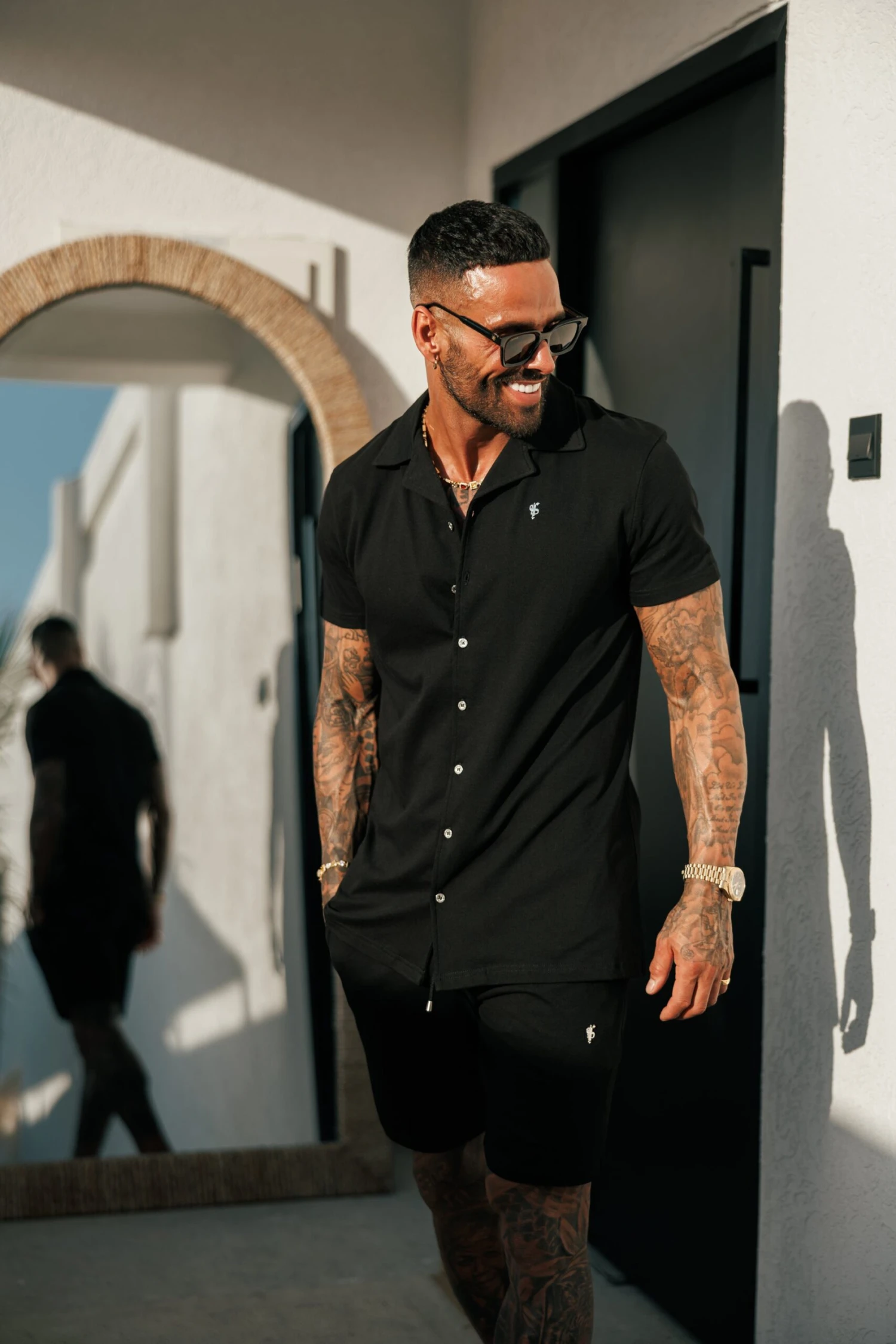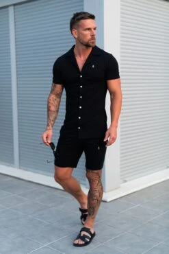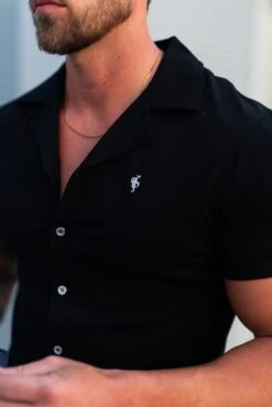Father Sons Stretch Black / Silver Pique Revere Shirt Short Sleeve – FSH1355