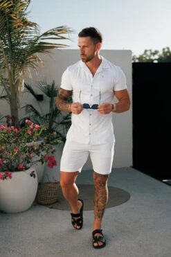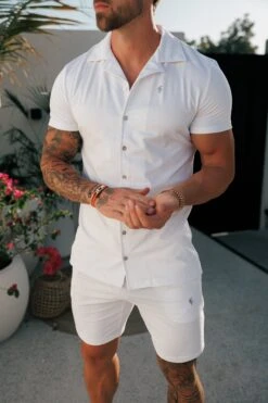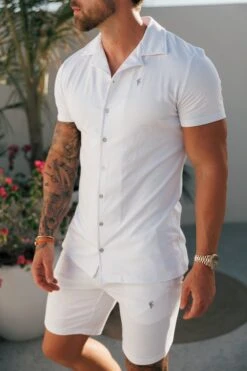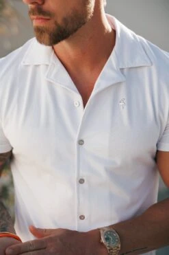 Father Sons Stretch White / Silver Pique Revere Shirt Short Sleeve – FSH1356