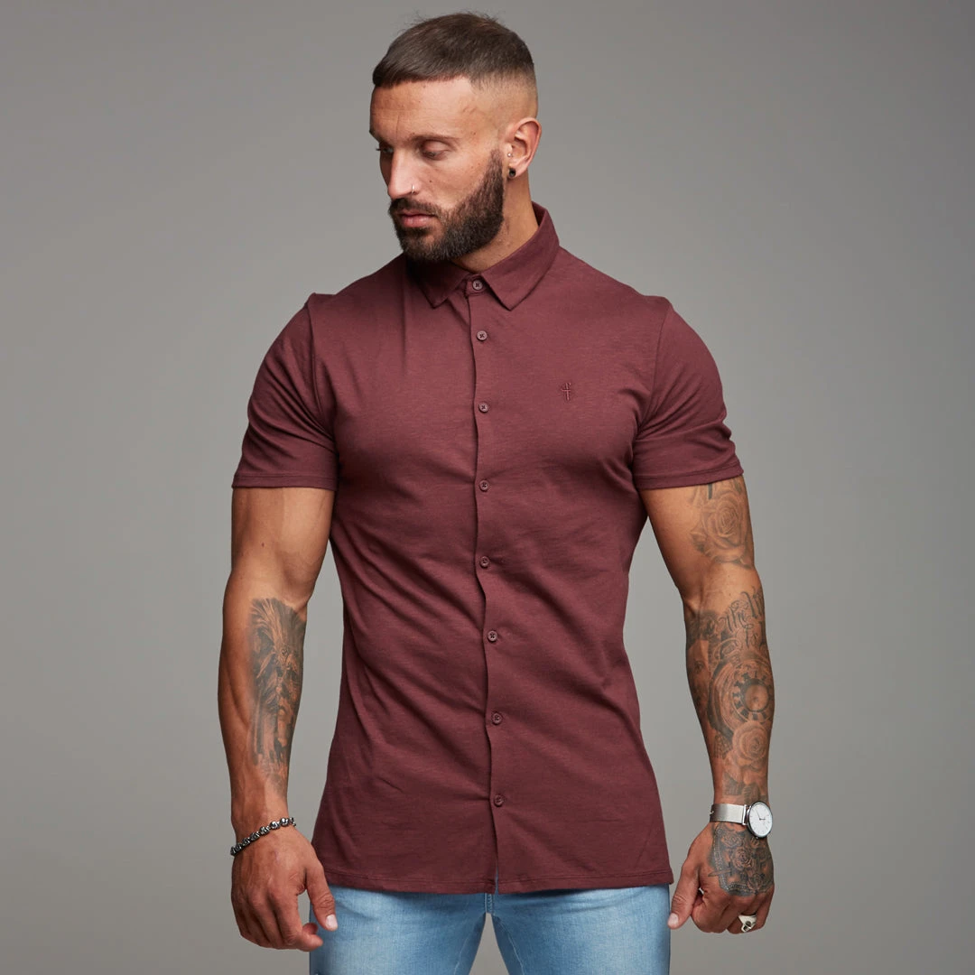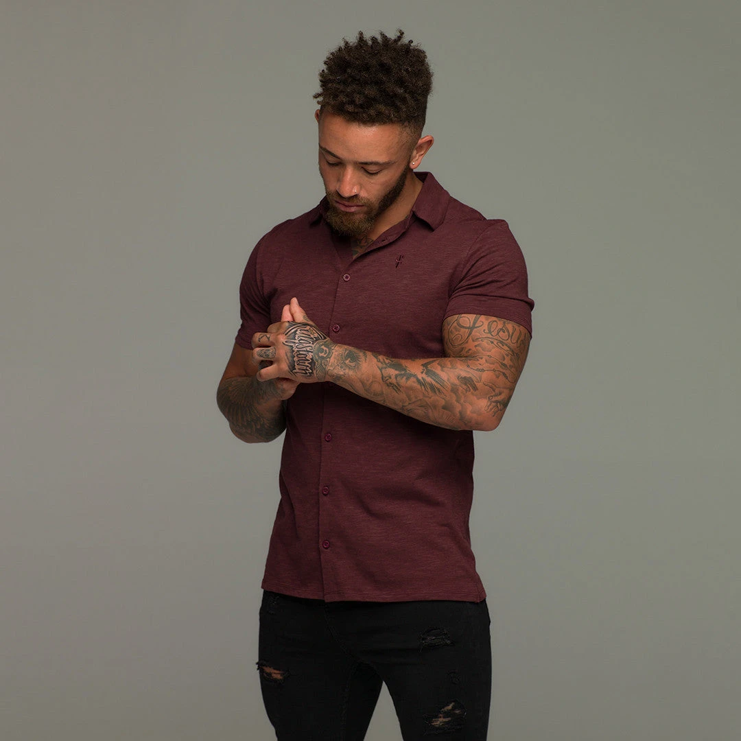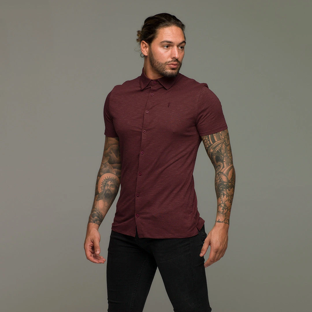 Father Sons Super Slim Burgundy Jersey Short Sleeve