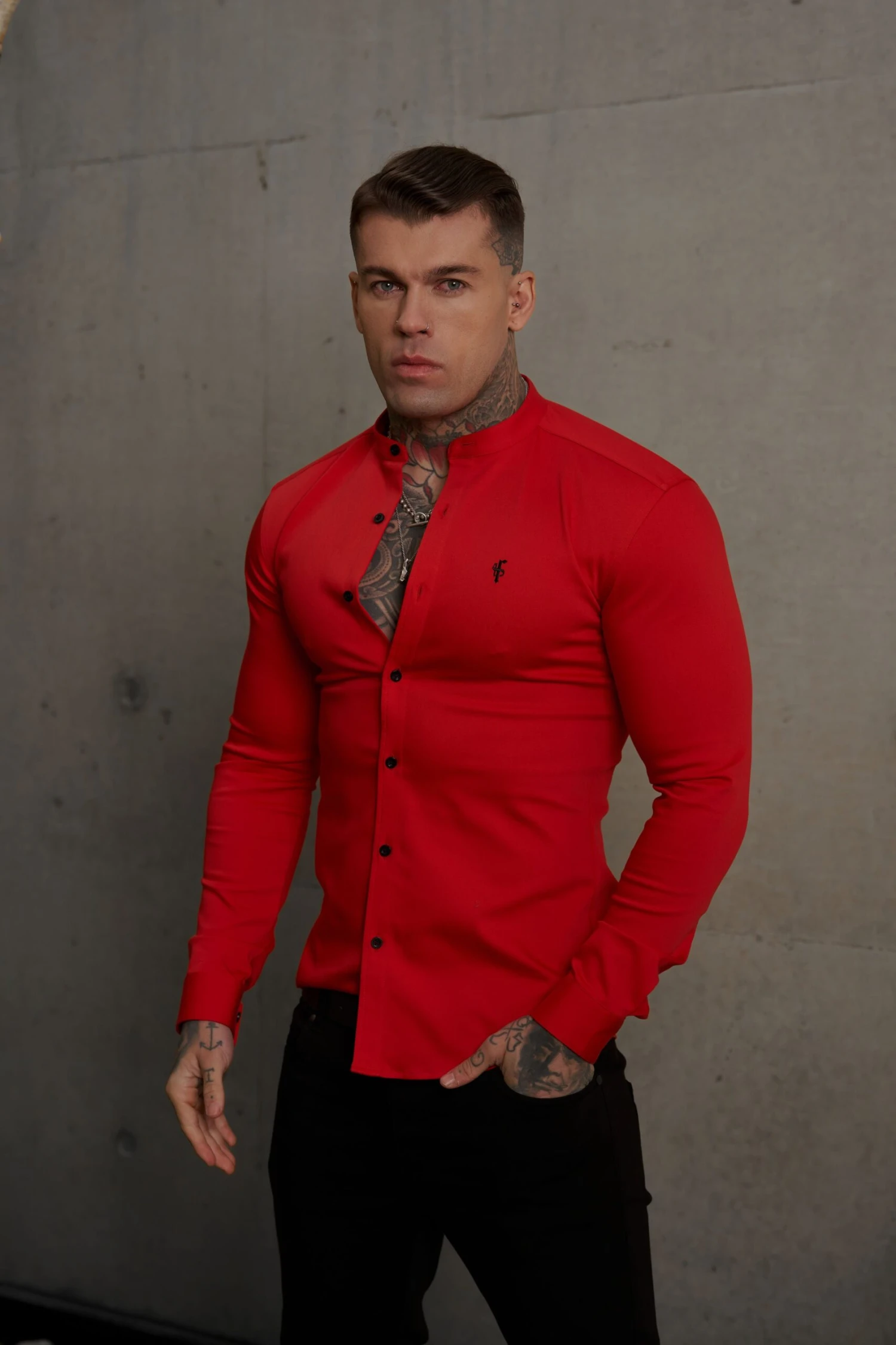 Father Sons Super Slim Denim Red Long Sleeve Stretch with Grandad Collar – FS1039