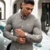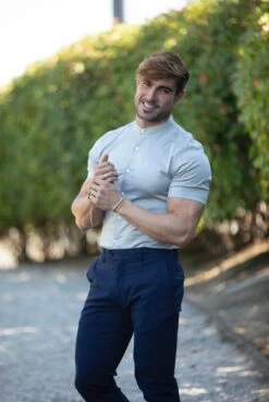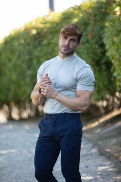 Father Sons Super Slim Luxe Ultra Stretch Light Grey Short Sleeve with Grandad Collar – FS778