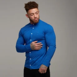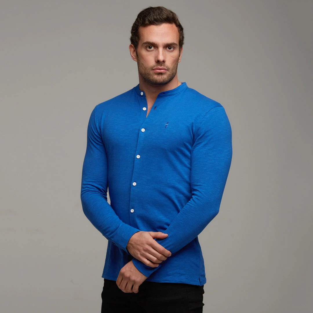 Father Sons Super Slim Royal Blue Grandad CollarJersey  – FH011
