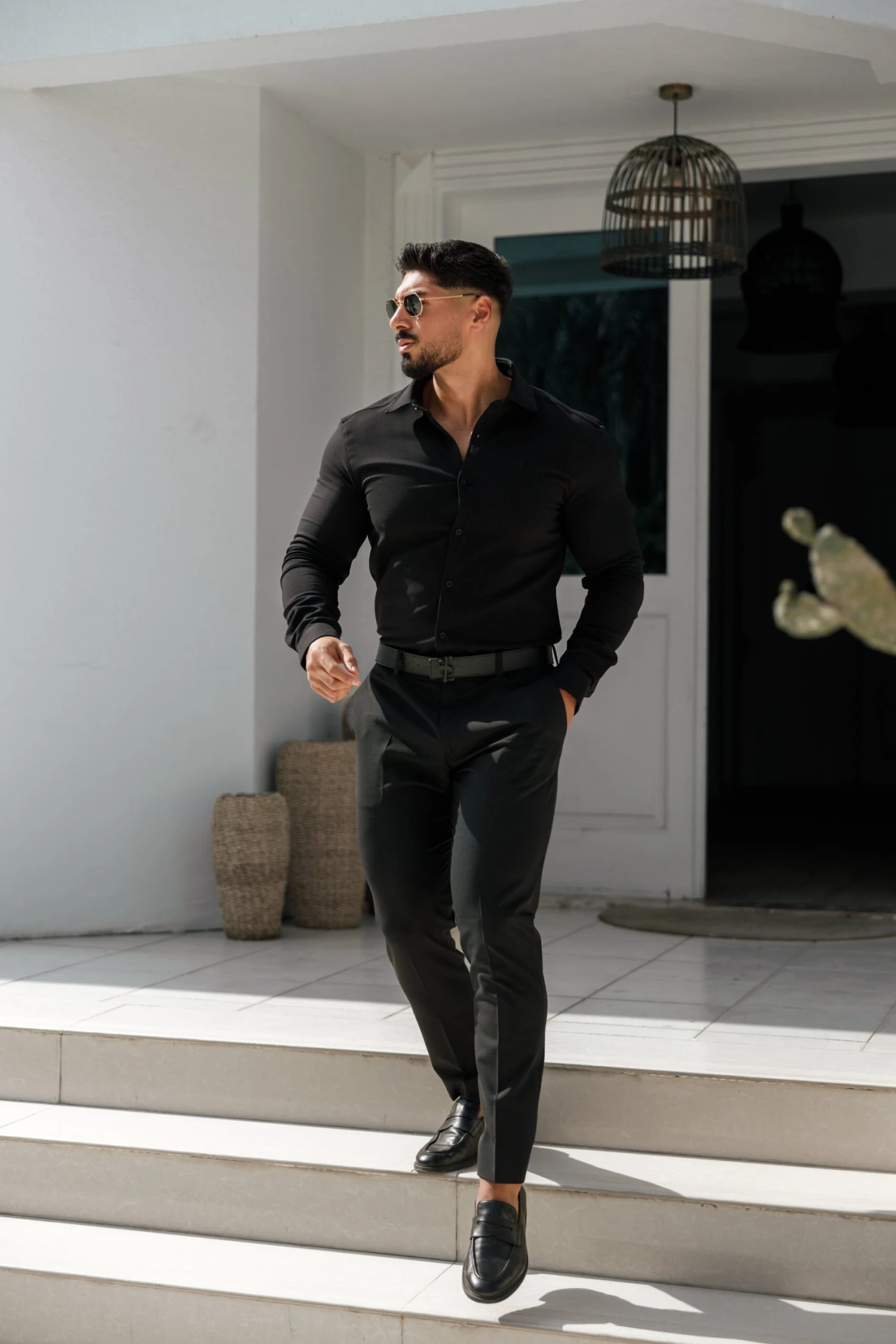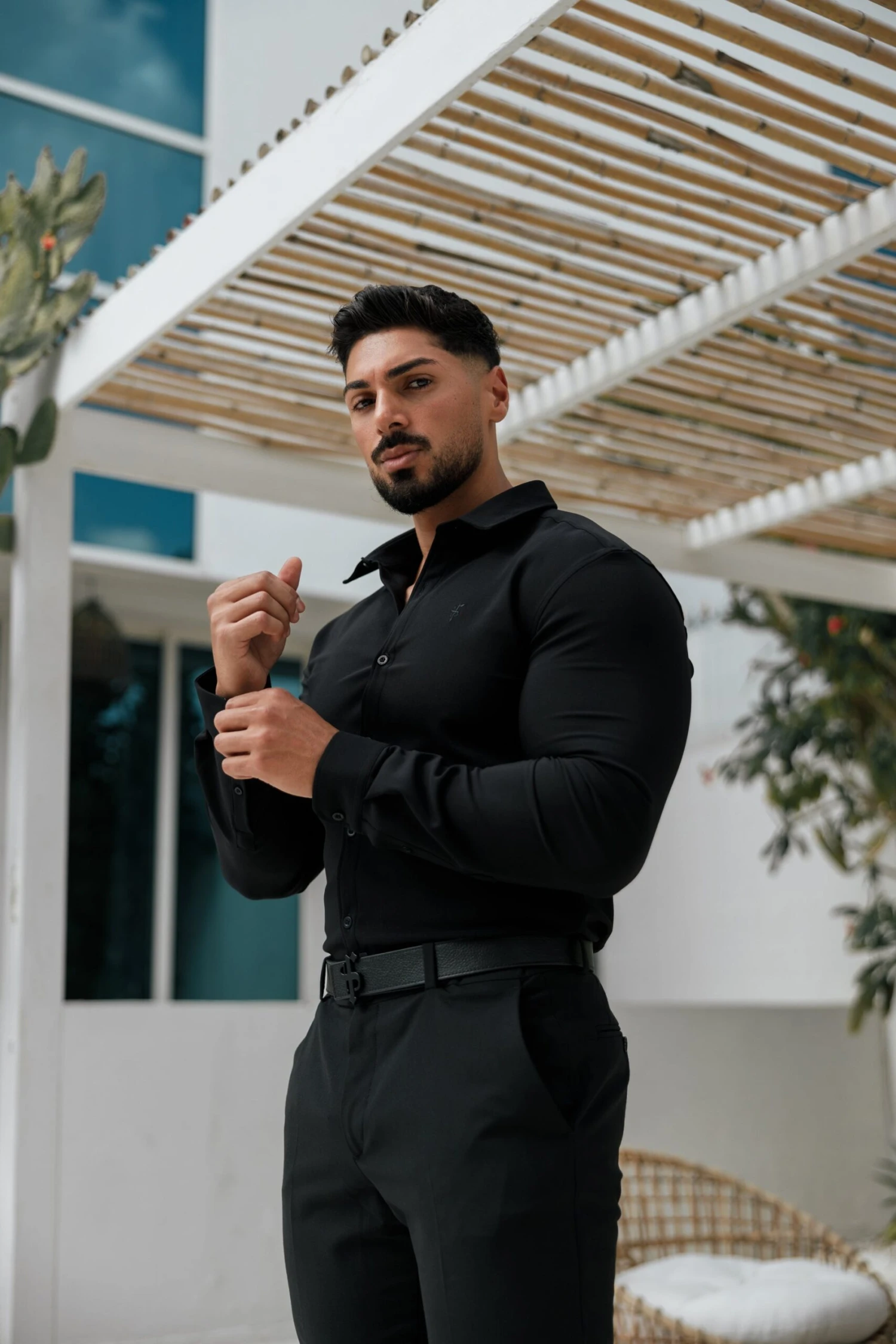 Father Sons Super Slim Scuba Black Long Sleeve Stretch with Back Box Pleat and Side Seam Detail – FS998