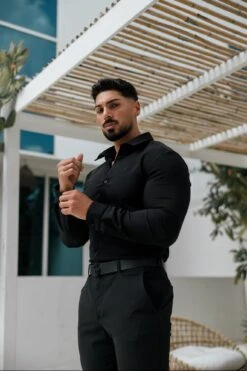 Father Sons Super Slim Scuba Black Long Sleeve Stretch with Cutaway Collar – FS1146