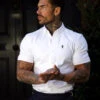 Made of the finest thick scuba stretch cotton featuring the Father Sons emblem. This design is for the gentleman looking for a super slim fit. Includes detachable bones to keep the collar looking firm.