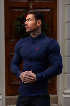 Father Sons Super Slim Scuba Navy / Red Long Sleeve Stretch with Grandad Collar – FS1000