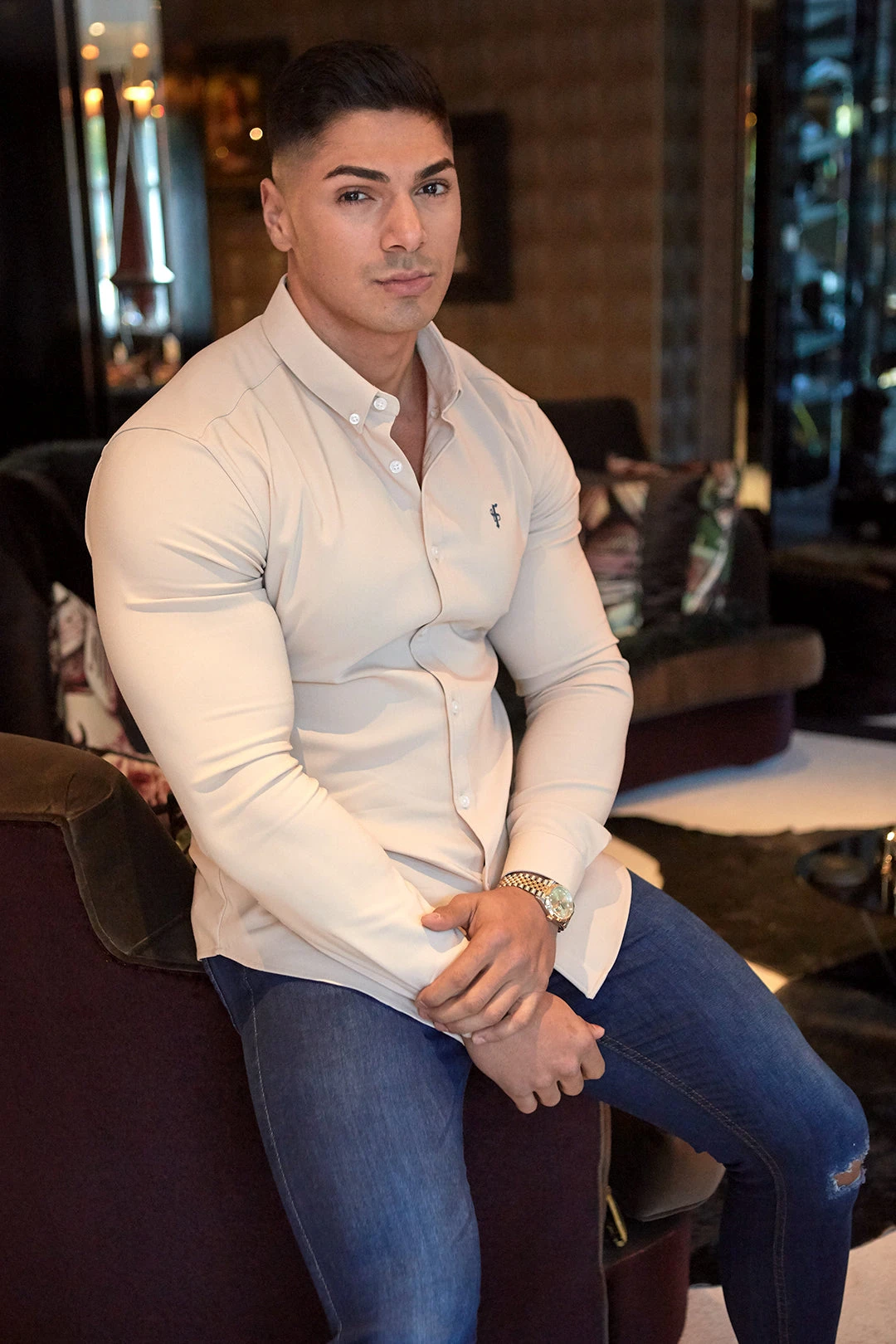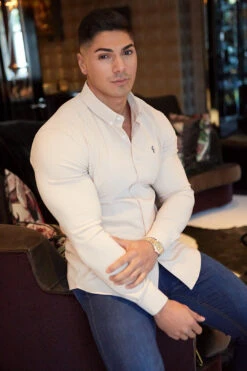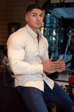 Made of the finest thick scuba stretch cotton featuring the Father Sons emblem. This design is for the gentleman looking for a super slim fit. Includes detachable bones to keep the collar looking firm.
