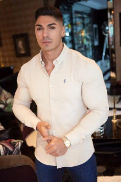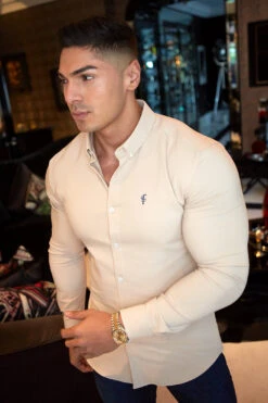 Father Sons Super Slim Scuba Taupe Stretch – FS486 (navy embroidery)