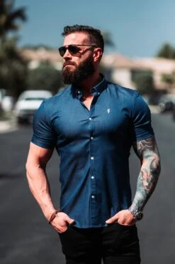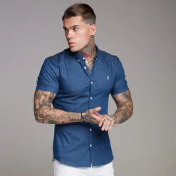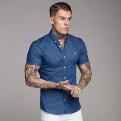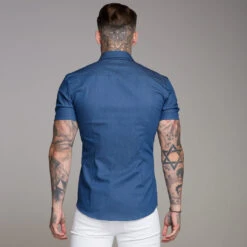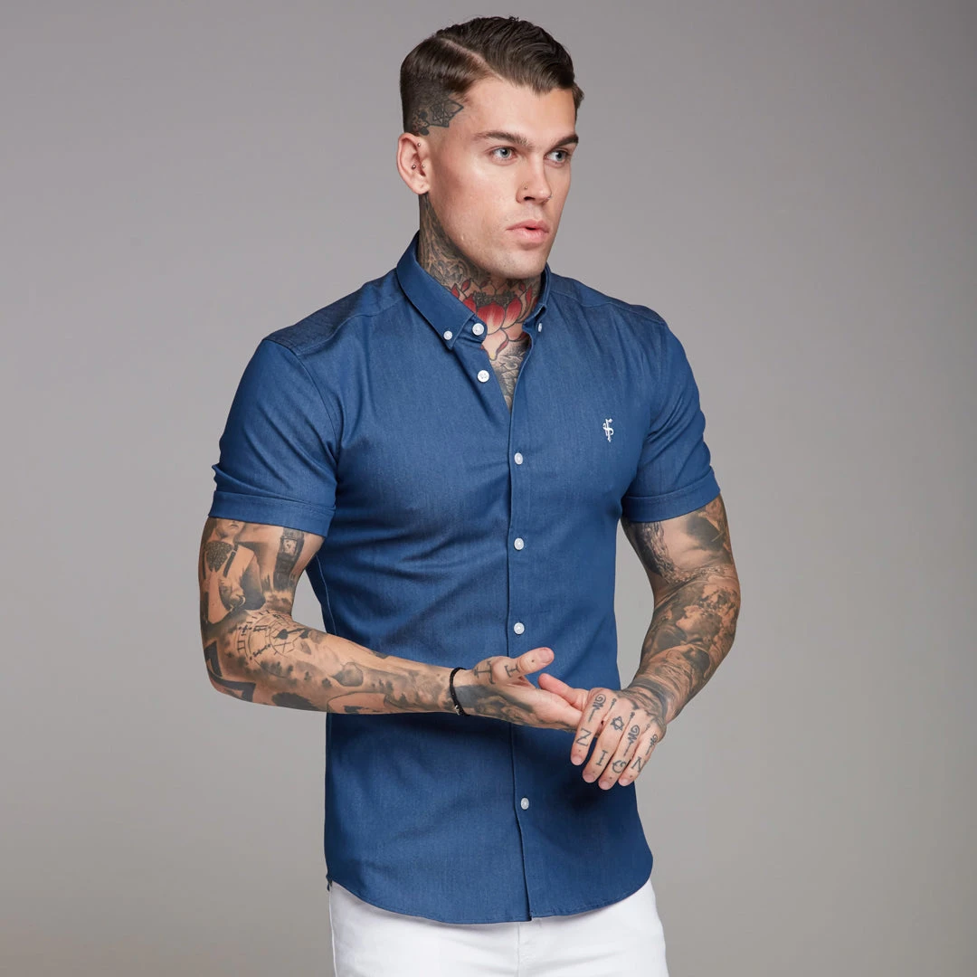 Father Sons Super Slim Stretch Aegean Blue Denim Short Sleeve – FS346