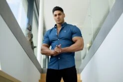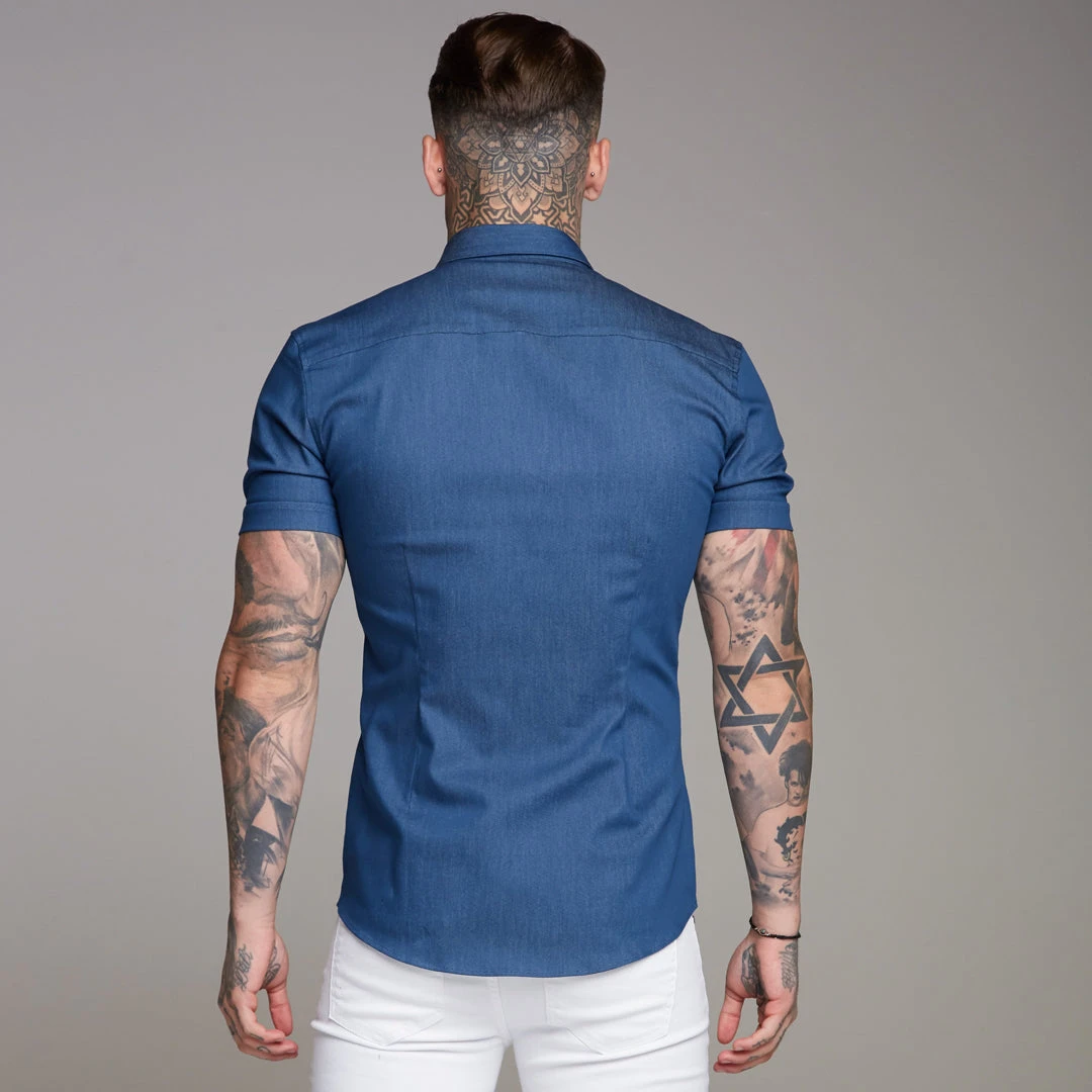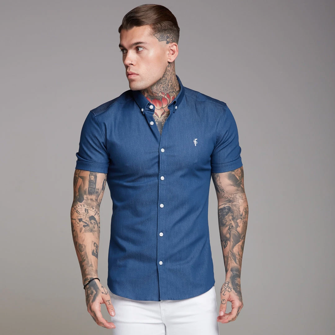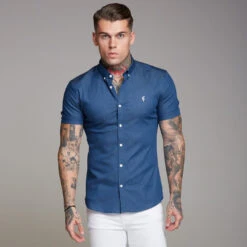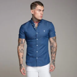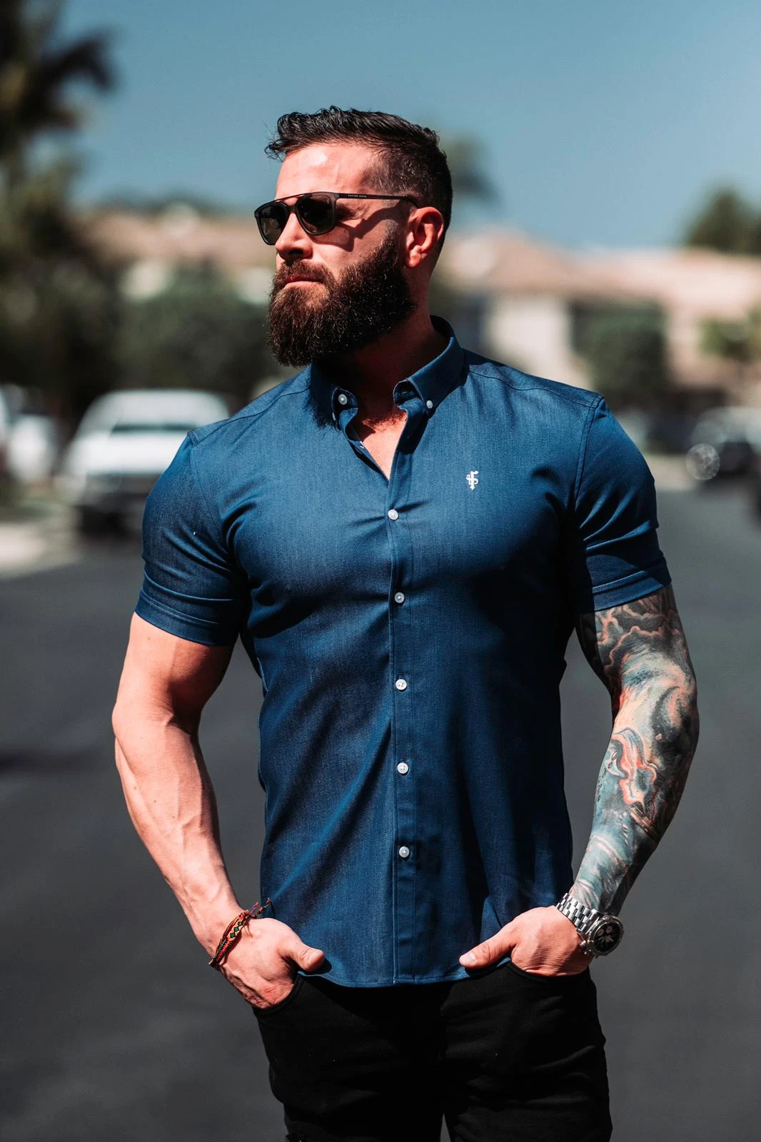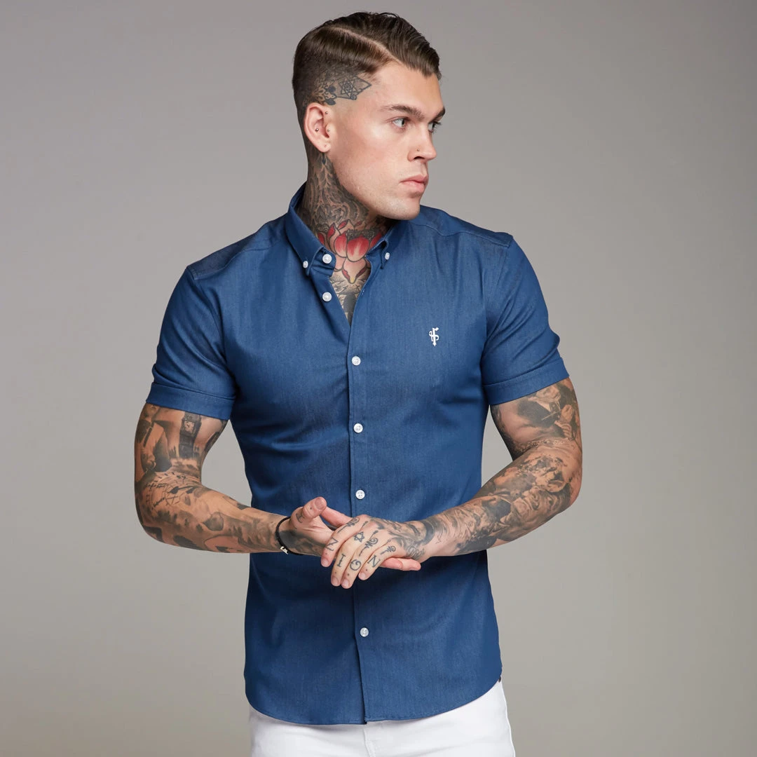 Made of the finest denim stretch cotton featuring the Father Sons emblem. The shirt is also made up of Elastane, this allows the shirt to stretch for the perfect fitted shirt. This design is for the gentleman looking for a super slim fit.
