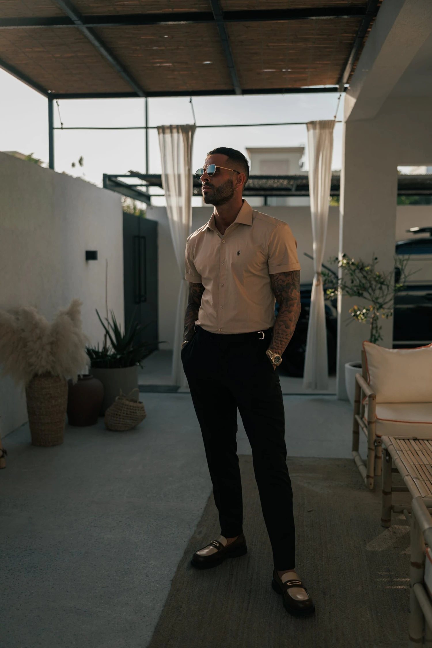 Father Sons Super Slim Stretch Beige Short Sleeve with Cutaway Collar – FS1161
