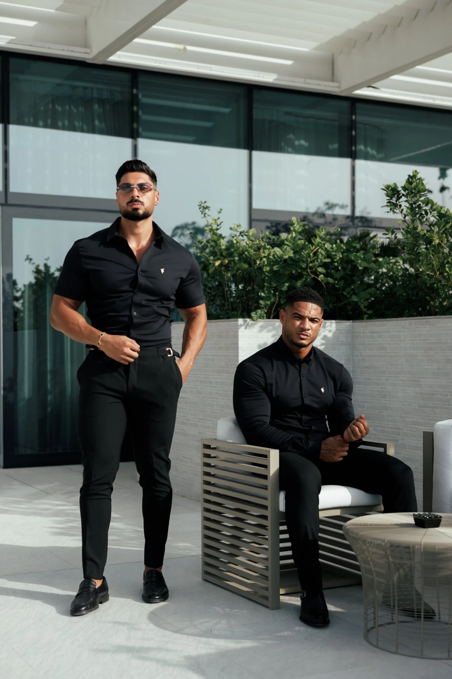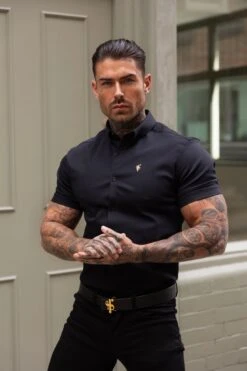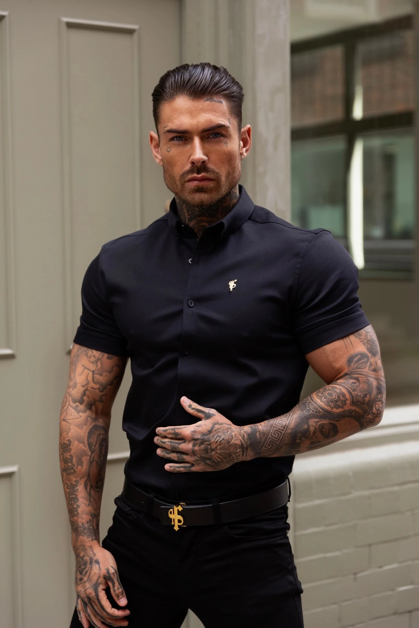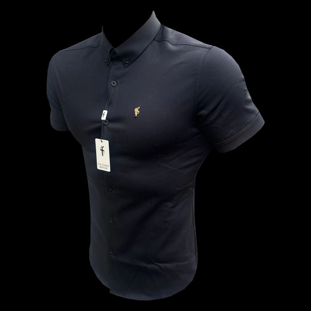 Father Sons Super Slim Stretch Black Denim Short Sleeve with Gold Metal Decal and Buttons – FS1041